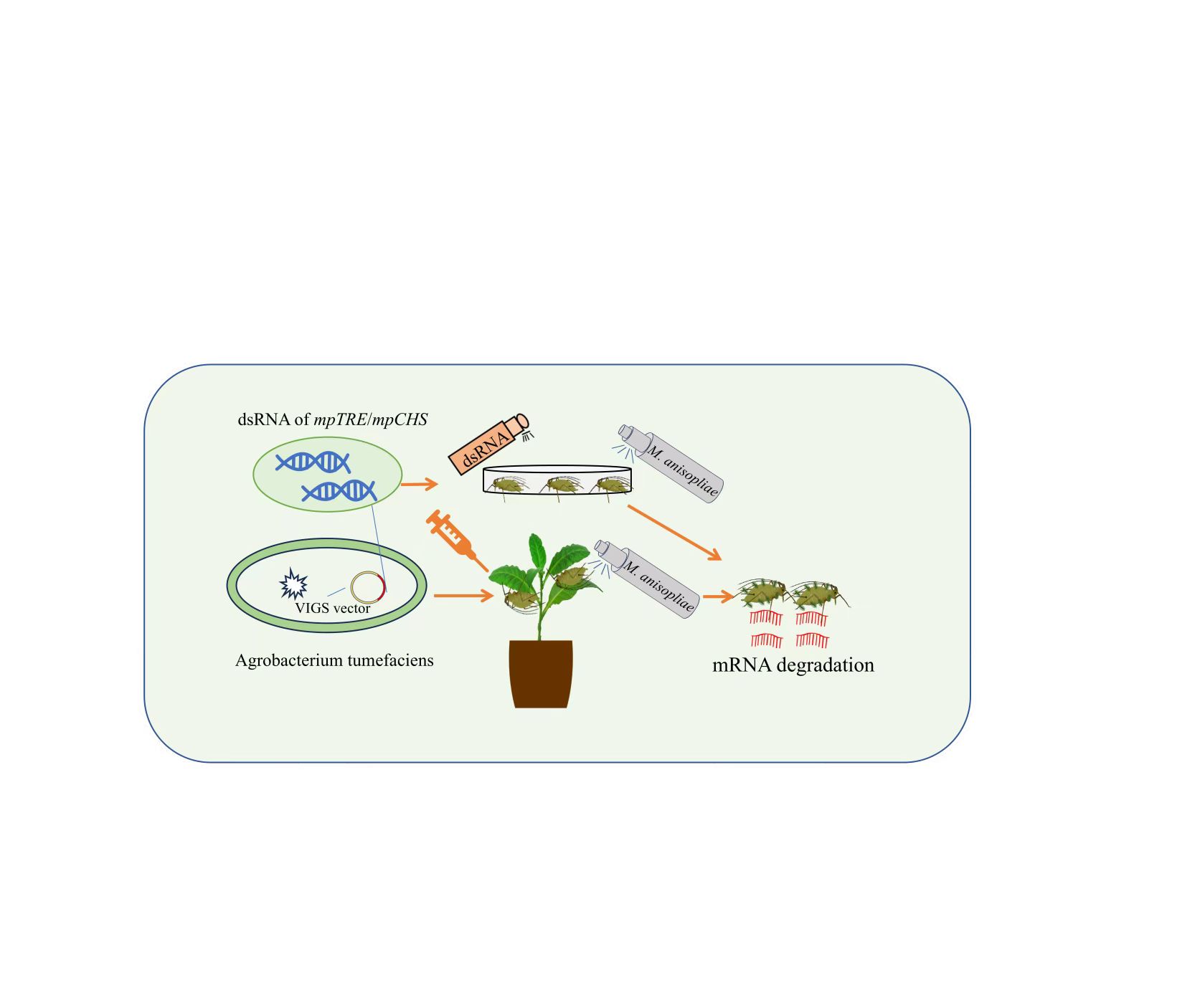 图1 通过dsRNA与绿僵菌结合实现烟蚜的防治的示意图