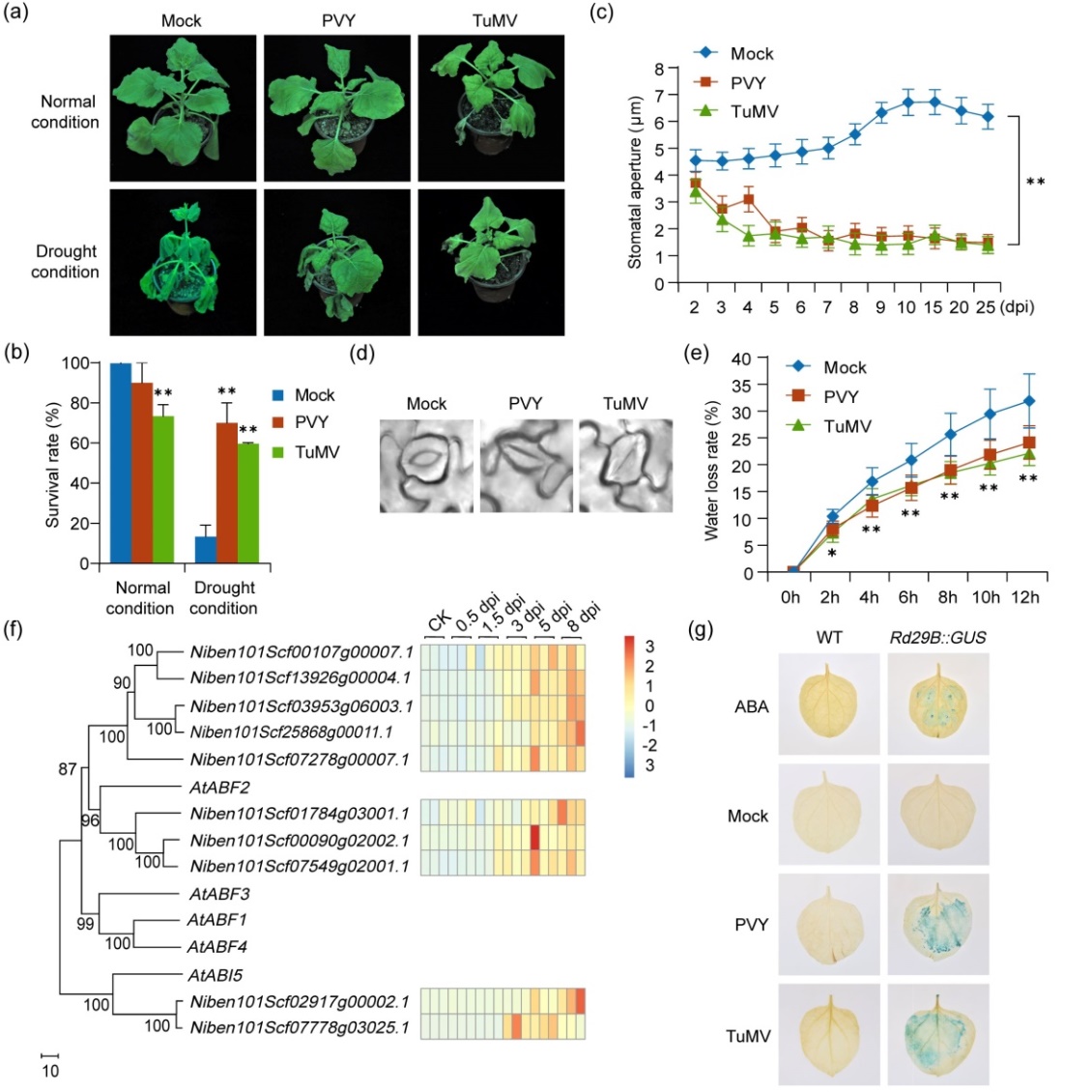 图1 PVY提高寄主抗旱能力并激活脱落酸信号途径
