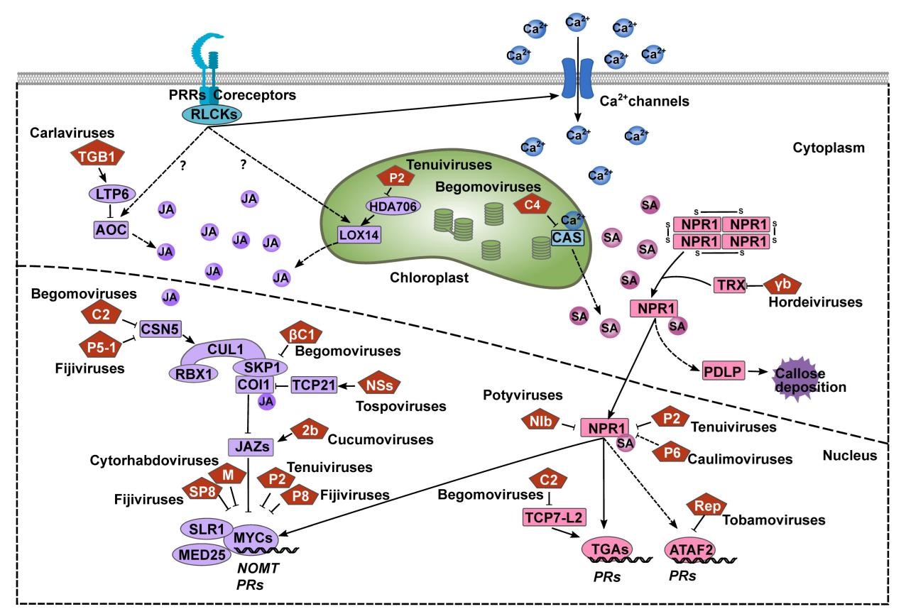 图3 病毒干扰水杨酸和茉莉酸途径的策略