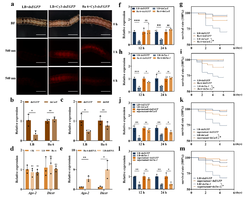 图 3. Ba 6菌株对双链RNA稳定性及宿主RNAi效率的影响