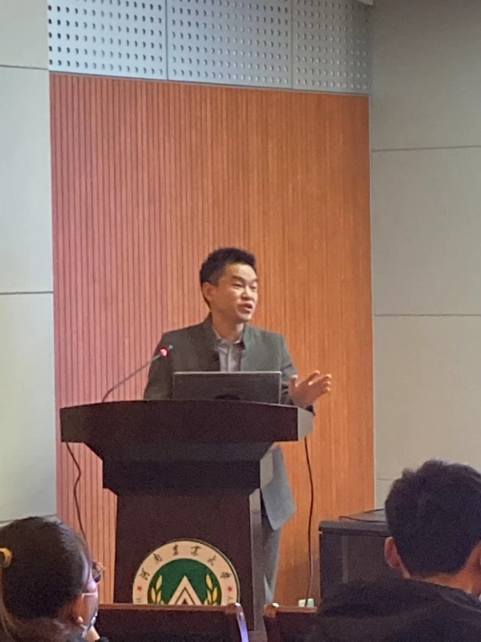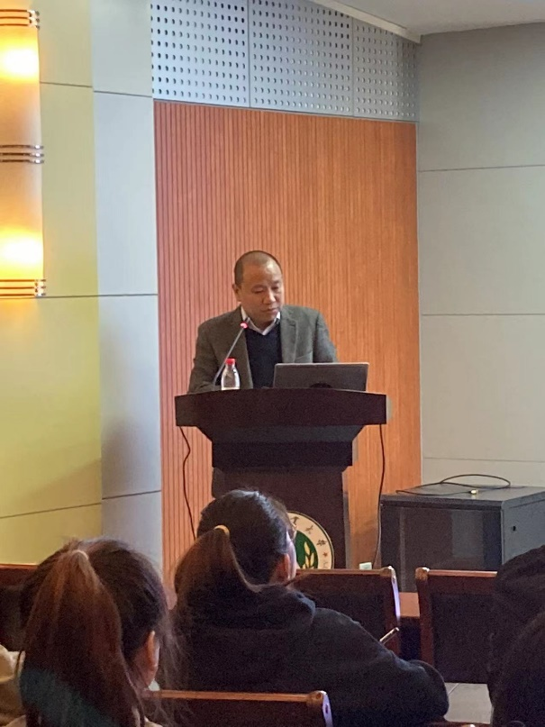 董丰收研究员首先对中国农科院植保所农药研究室的学科定位、研究方向、人员组成等基本情况做了介绍,然后以“农药应用风险评估及控制研究”为题,从传统农药残留检测技术的局限性、农药残留快速检测技术与产品研制、手性农药隐性风险评估及控制、农药安全国家标准的制定等方面进行了详细系统地介绍。曹立冬研究员以“新形势下农药研究与应用的发展方向和趋势” 为题,从新形势下农业绿色高质量发展已经成为国家战略、农药科学使用是实现农业高质量发展的必然要求、绿色智能精准高效将成为农药研究与应用的方向和未来农药研究与产业应用的系统认知和整体举四个方面对从农药的创制、精准使用、合理安全评价等做了前瞻性的论述。两位专家的报告高瞻远瞩,立意深远,内容丰富,贴近实际,为学院科研和学生培养指明了方向,赢来在座师生热烈的掌声。(文 图/杜鹏强)