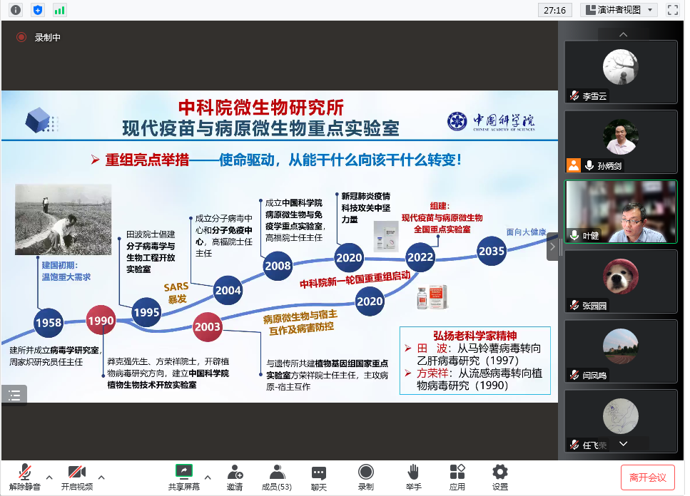 研究生作题为“微生物-作物-昆虫三者互作——植物抗虫媒病机制及其抗病应用”的学术报告。报告采用腾讯会议线上举行,由孙炳剑教授主持,学院60余名师生线上参加了本次学术报告会。