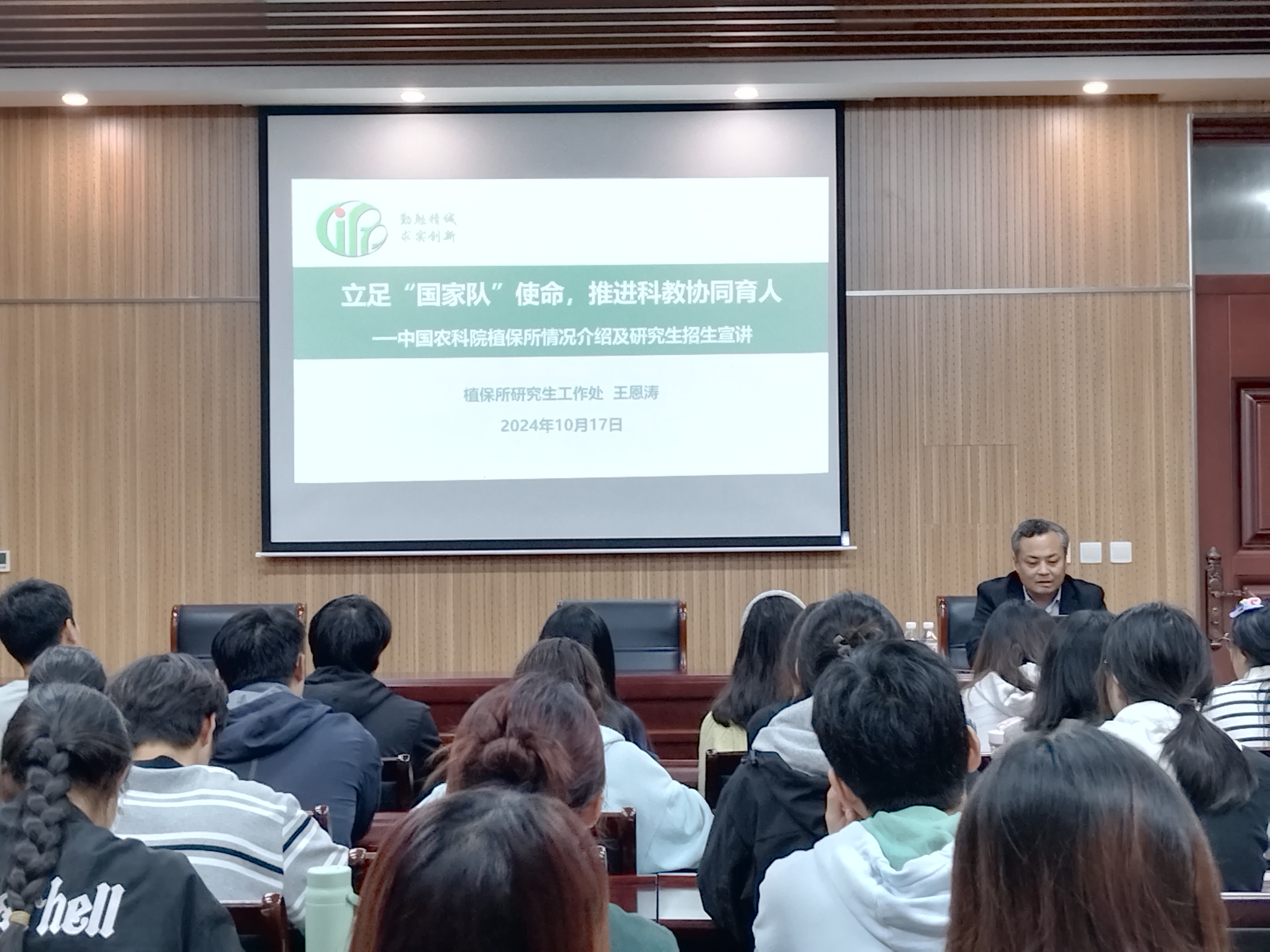 25届考研同学参加宣讲会,会议由植保所研究生工作处处长王恩涛主持。