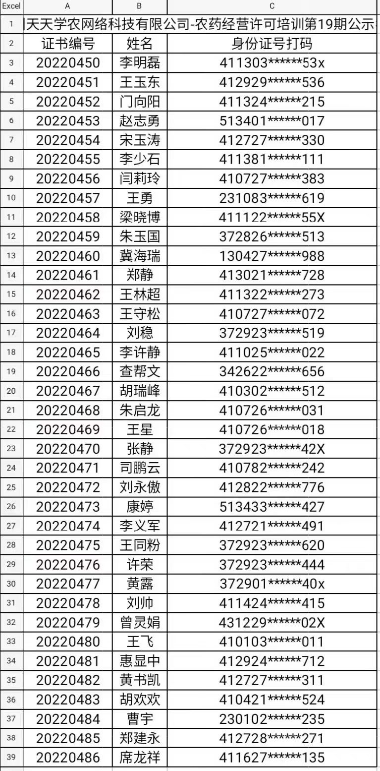 农药经营许可培训第19期公示名单 |