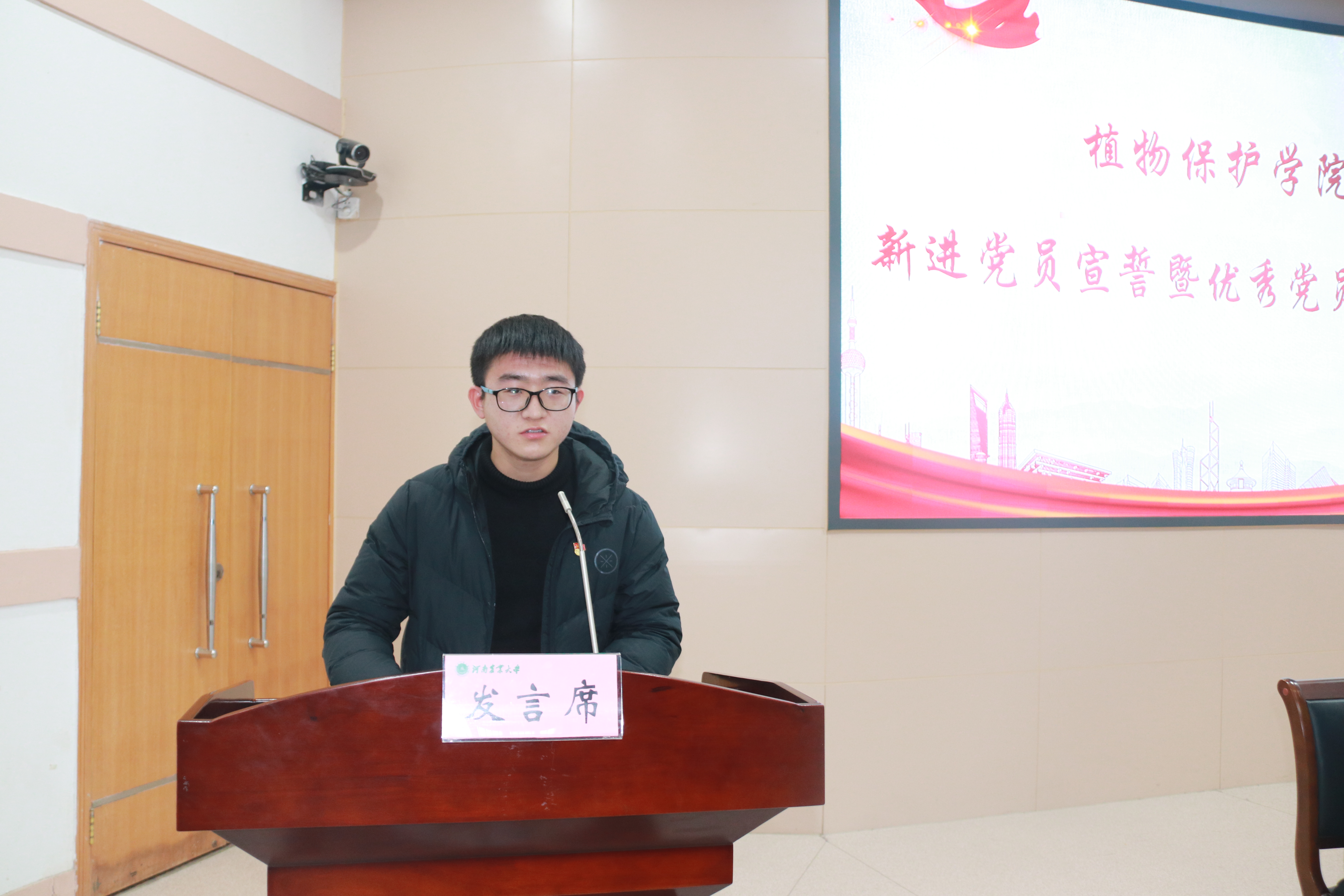 新发展党员代表张峻权进行发言。他回顾了自己的入党历程并表示会继续增强政治素养,将思想意识与实际行动紧密结合起来。优秀共产党员代表孙龙龙进行发言。他详细介绍了自己所在校级样板党支部的建设情况及支部学生党员积极投身志愿服务的先进事迹,展现了a动漫 学生党员在新时代的使命与担当以及学生党支部的战斗堡垒作用。