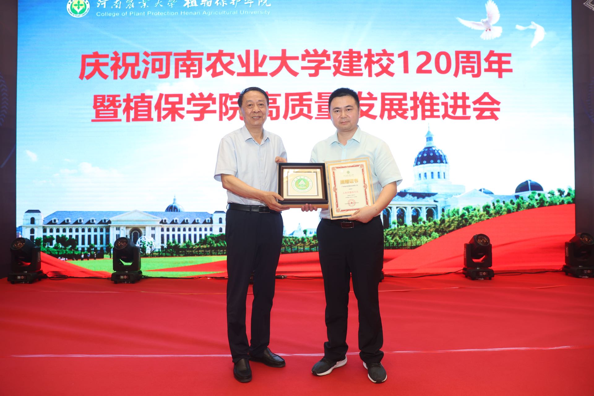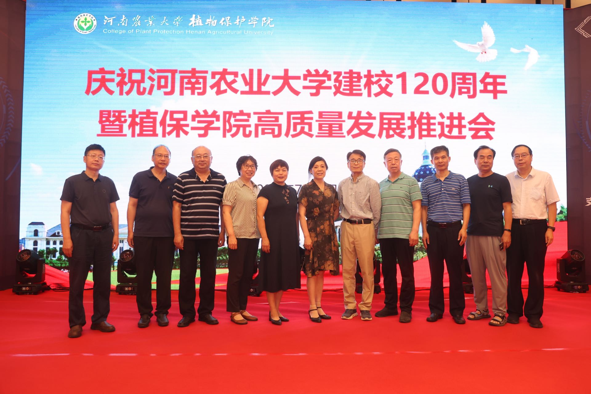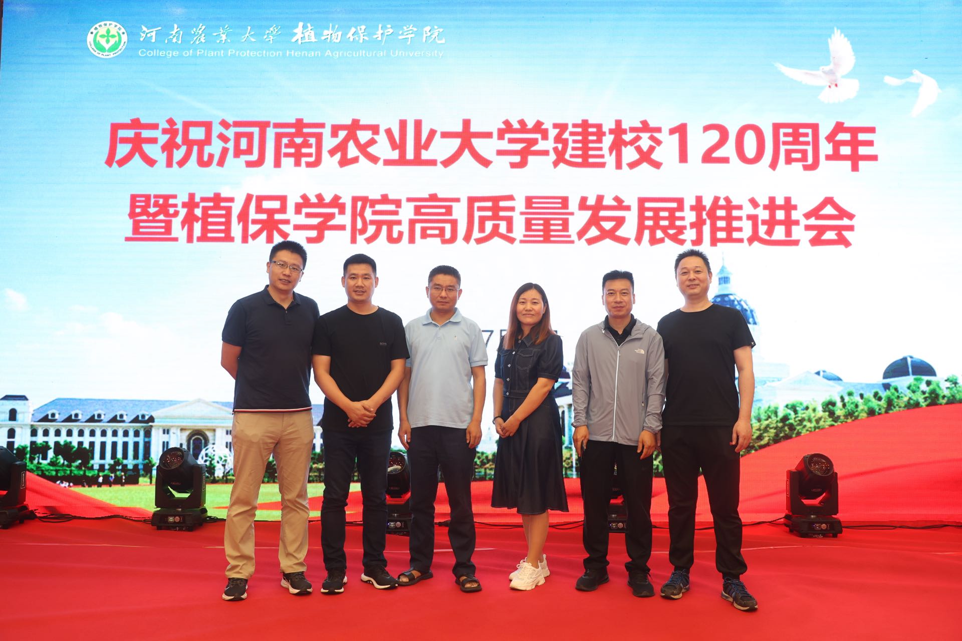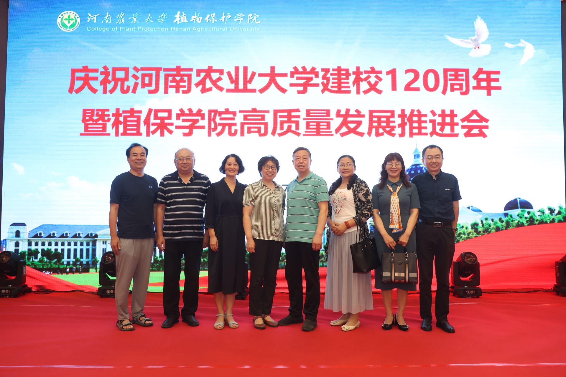 建校120周年暨植保学院高质量发展推进会。校党委书记魏蒙关、副校长尹新明,学术副校长王道文及学校相关部门领导莅临指导,远在北京、上海及美国、英国、加拿大等国家的海内外校友纷纷发来贺信贺电,包括各级各界优秀校友代表、离退休教师代表、曾经在学院工作的领导及教工代表、学院师生代表参加了本次大会。大会由学院党委书记张留占主持。
