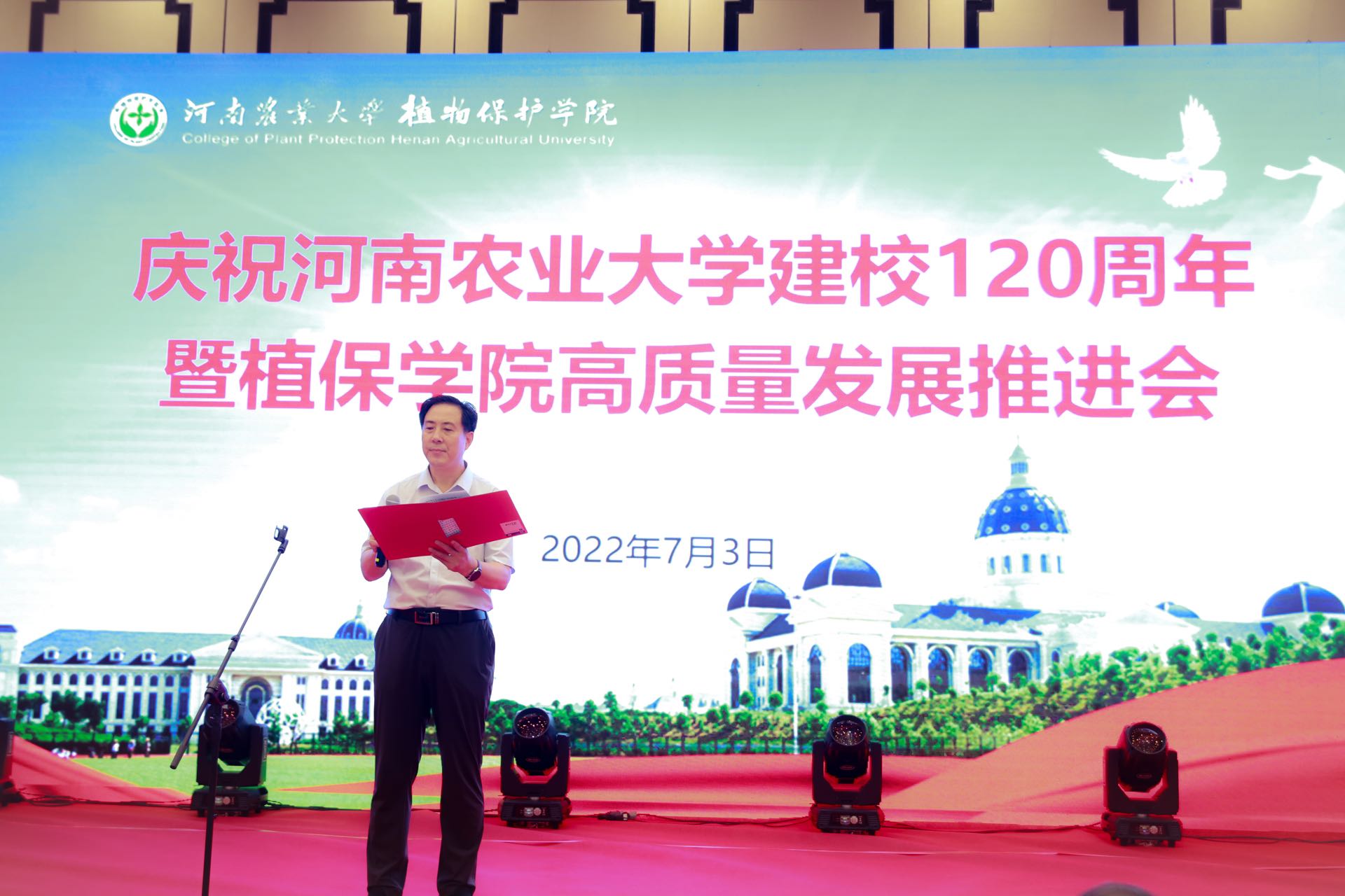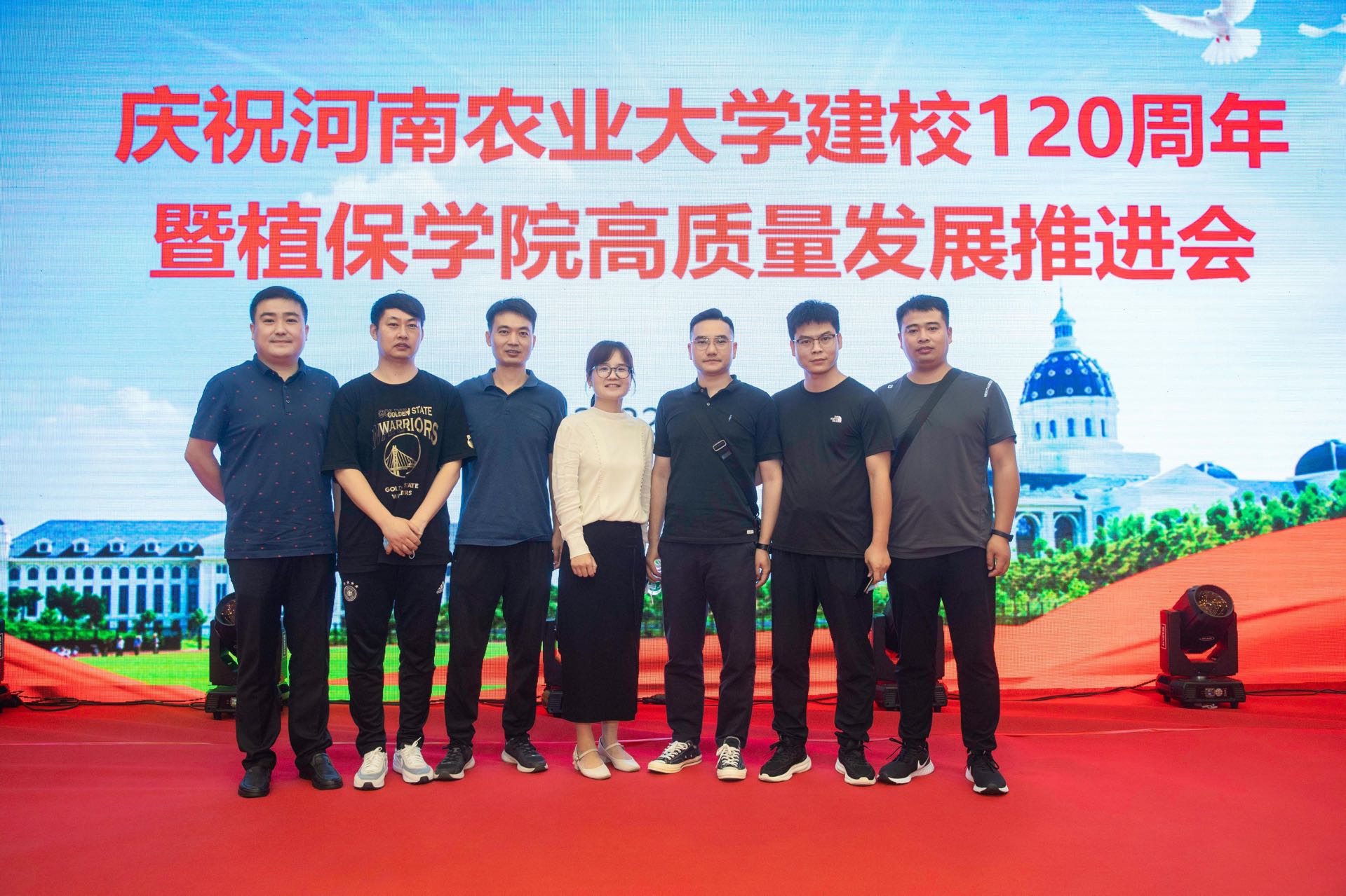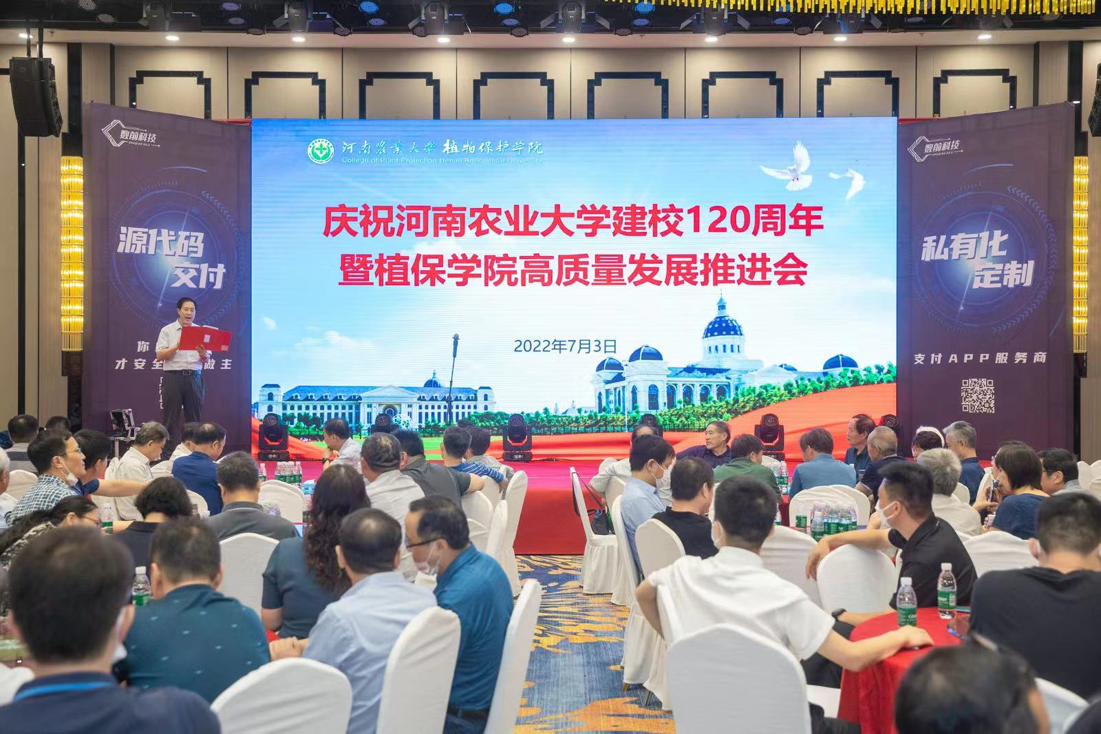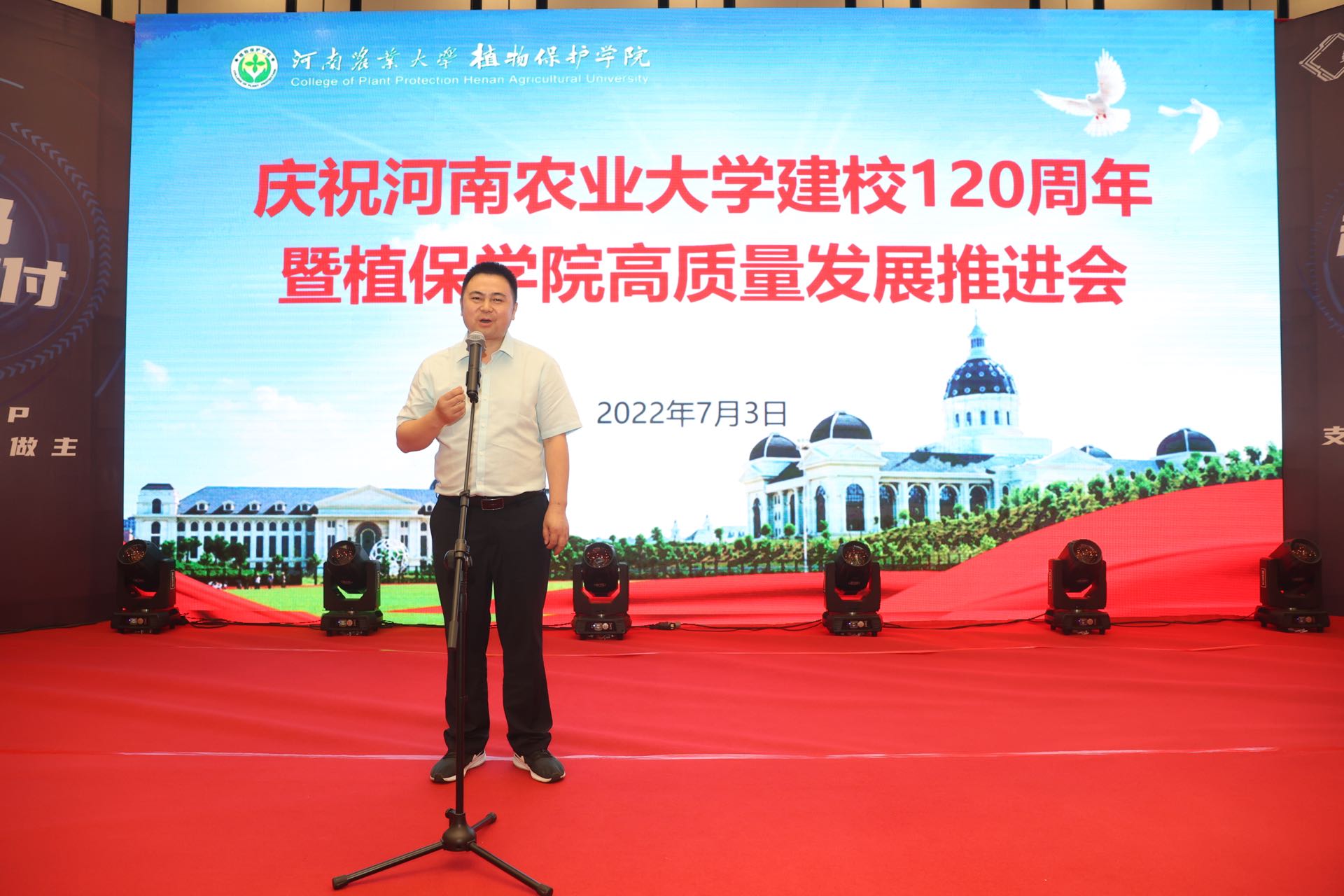 建校120周年暨植保学院高质量发展推进会。校党委书记魏蒙关、副校长尹新明,学术副校长王道文及学校相关部门领导莅临指导,远在北京、上海及美国、英国、加拿大等国家的海内外校友纷纷发来贺信贺电,包括各级各界优秀校友代表、离退休教师代表、曾经在学院工作的领导及教工代表、学院师生代表参加了本次大会。大会由学院党委书记张留占主持。