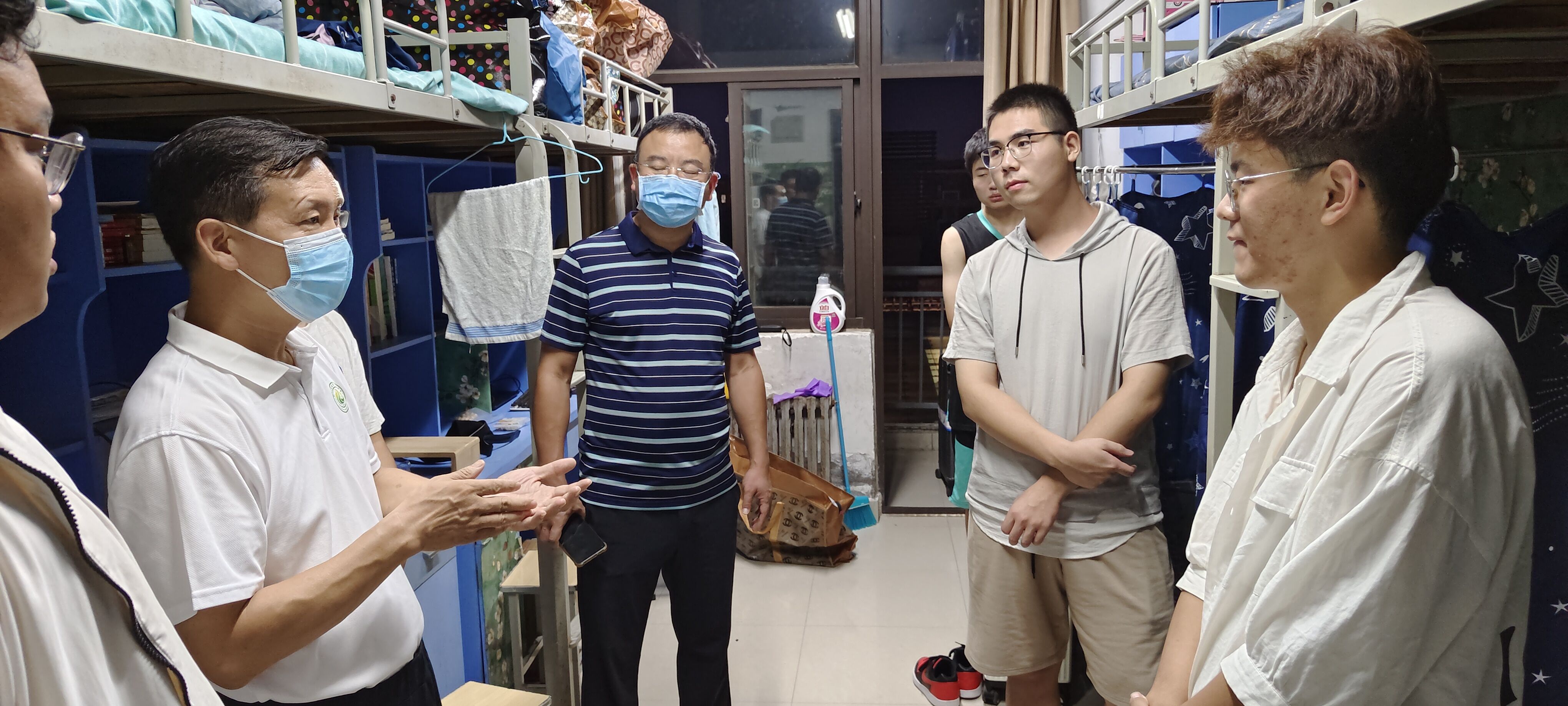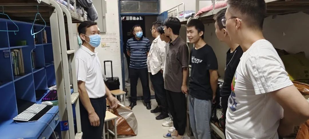 当天晚上,院党委书记李兴道、院党委副书记鲁兴、院研究生负责人常世鹏老师,院教学秘书孙炳剑老师和院团委王赟飞老师一行到20级学生宿舍和研究生宿舍。了解学生的搬迁安顿情况,提醒学生要注意安全,切实解决学生问题,为学生们送上中秋祝福。