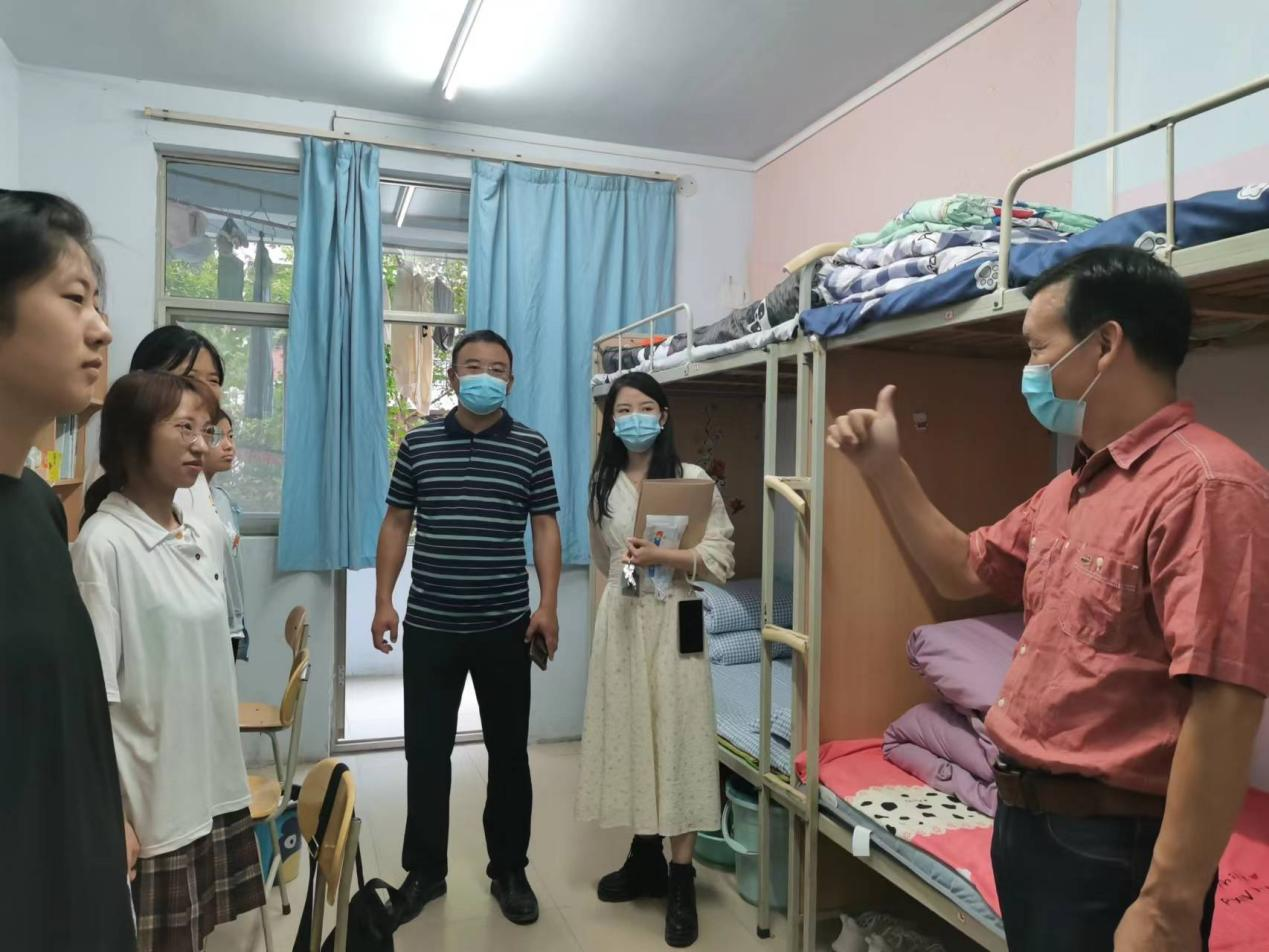 本网讯(通讯员 晋艺飞 图片 冯志宏 )深入宿舍递温情,关怀备至暖人心。9月21日下午,为深入了解2022级新生报道后的宿舍生活情况,更好掌握新生思想动态,院党委书记李兴道、院党委副书记鲁兴、团委副书记甄珍、新生辅导员代琳等部门负责人来到2022级新生桃李园公寓进行走访慰问,向新生们传达学院的问候与关怀。