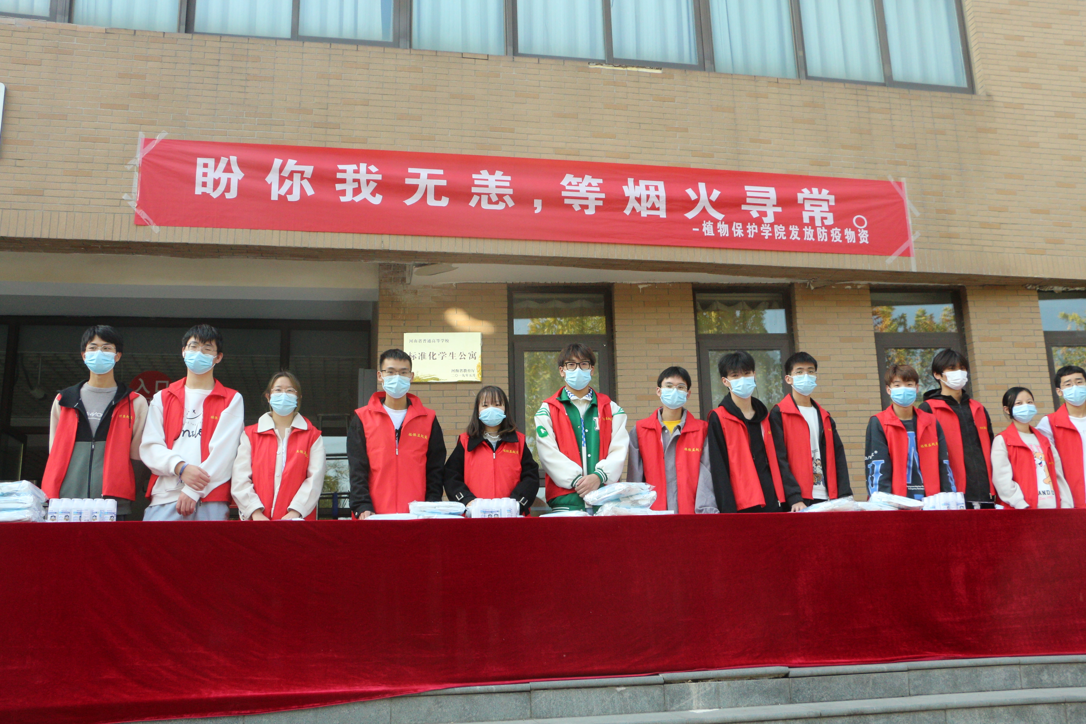 于11月17日上午,辅导员王赟飞带领学生干部在龙子湖校区桂花园开展防疫物资发放活动。