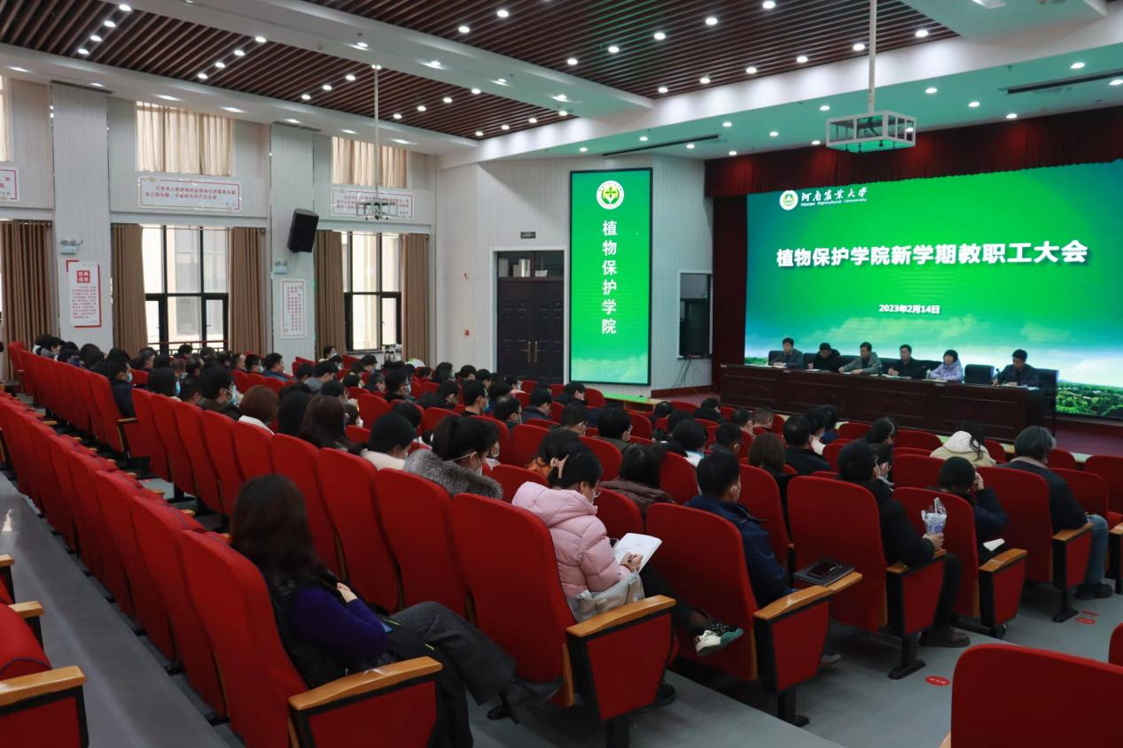 在龙子湖校区繁塔楼AB座大教室一召开了新学期教职工大会。全体教职工参加会议,会议由党委书记李兴道主持。