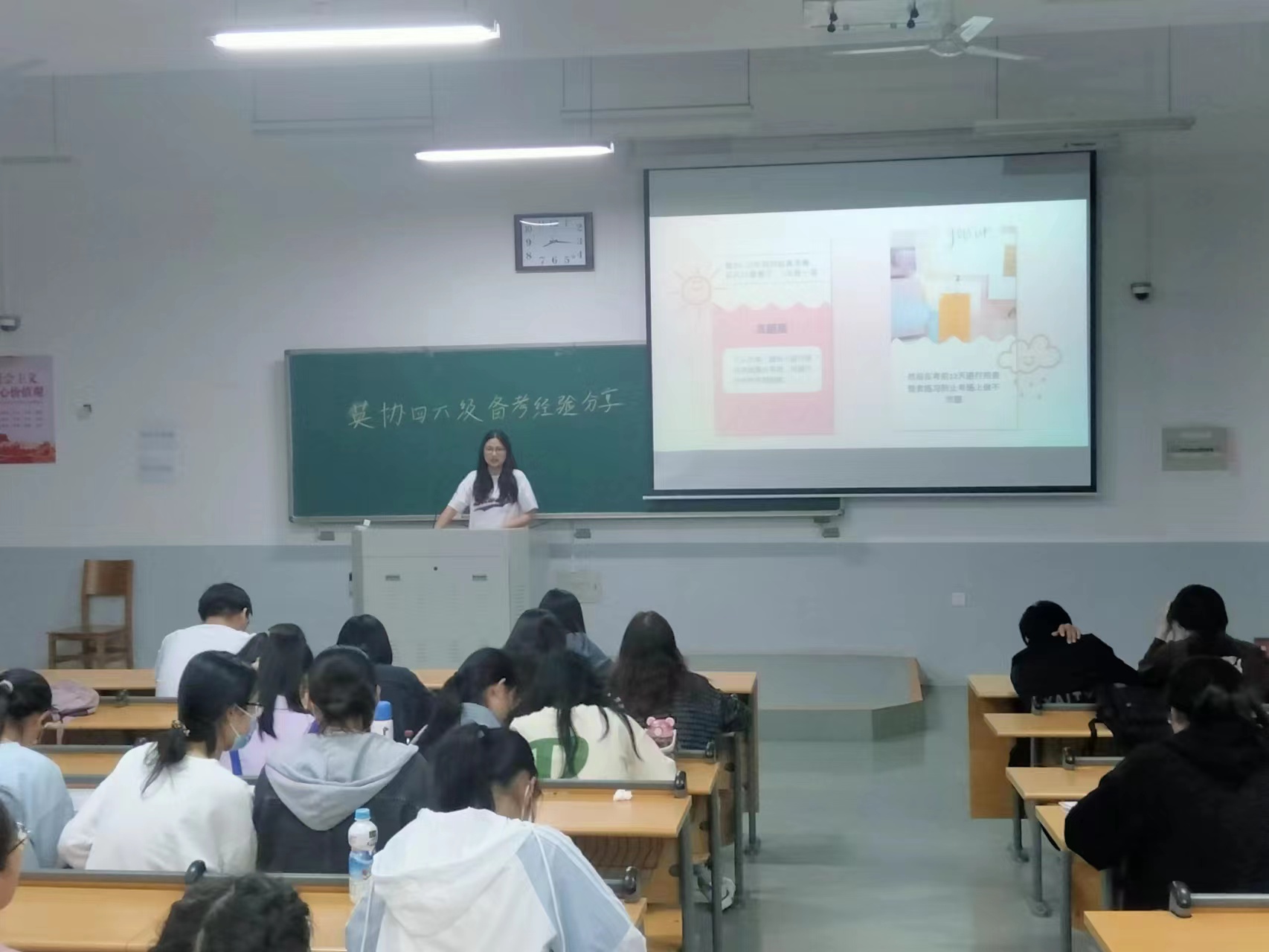 本网讯(通讯员 晋艺飞 图片 英语爱好者协会)为进一步加强学风建设,营造浓厚英语学习氛围,提高英语四六级通过率。5月8日晚,a动漫 英语爱好者协会于龙子湖校区D110教室举办了四六级备考经验分享会。