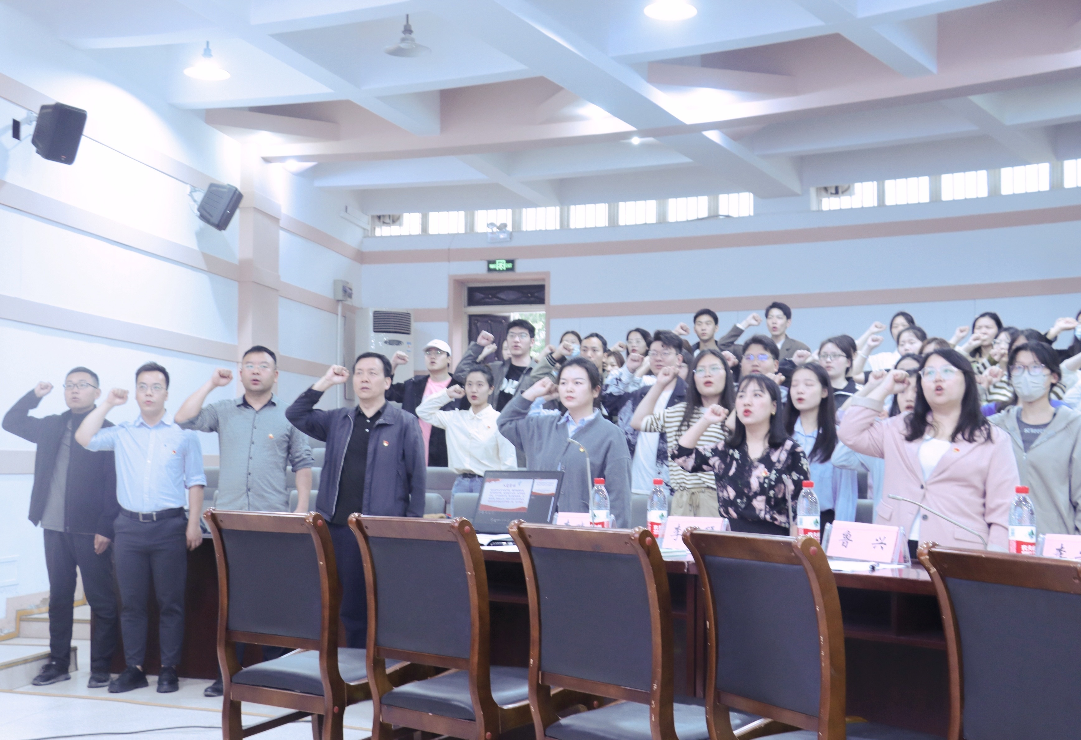 于文化路校区300人大礼堂召开毕业生党员大会。院党委书记李兴道、院党委副书记鲁兴及团委相关老师出席会议,2023届全体毕业生党员参加会议。会议由鲁兴主持。