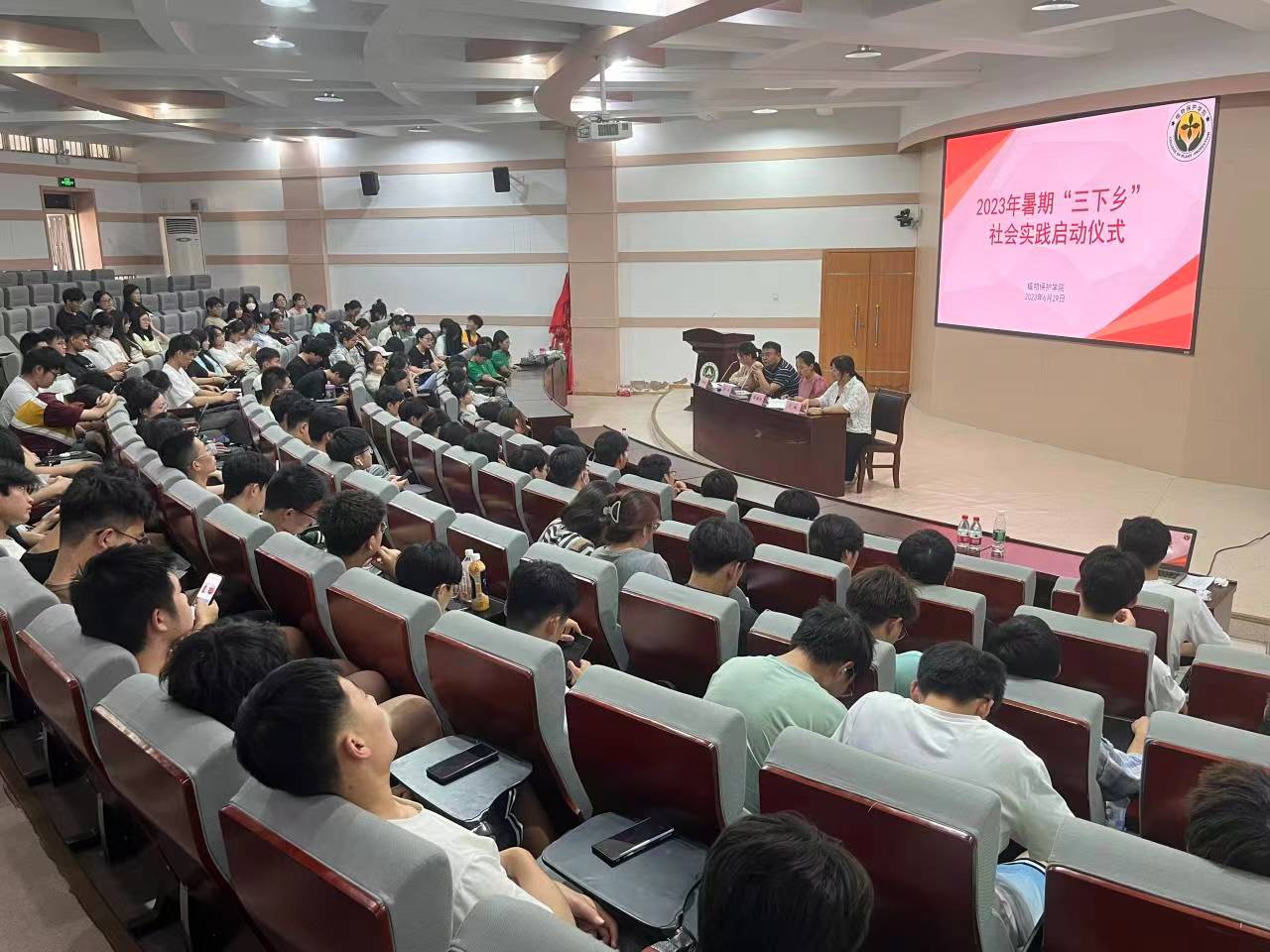 在文化路校区三百人报告厅隆重举行2023年暑期社会实践启动仪式。院党委副书记鲁兴、院相关指导老师及各社会实践团队学生代表共同参加启动仪式,仪式由鲁兴主持。