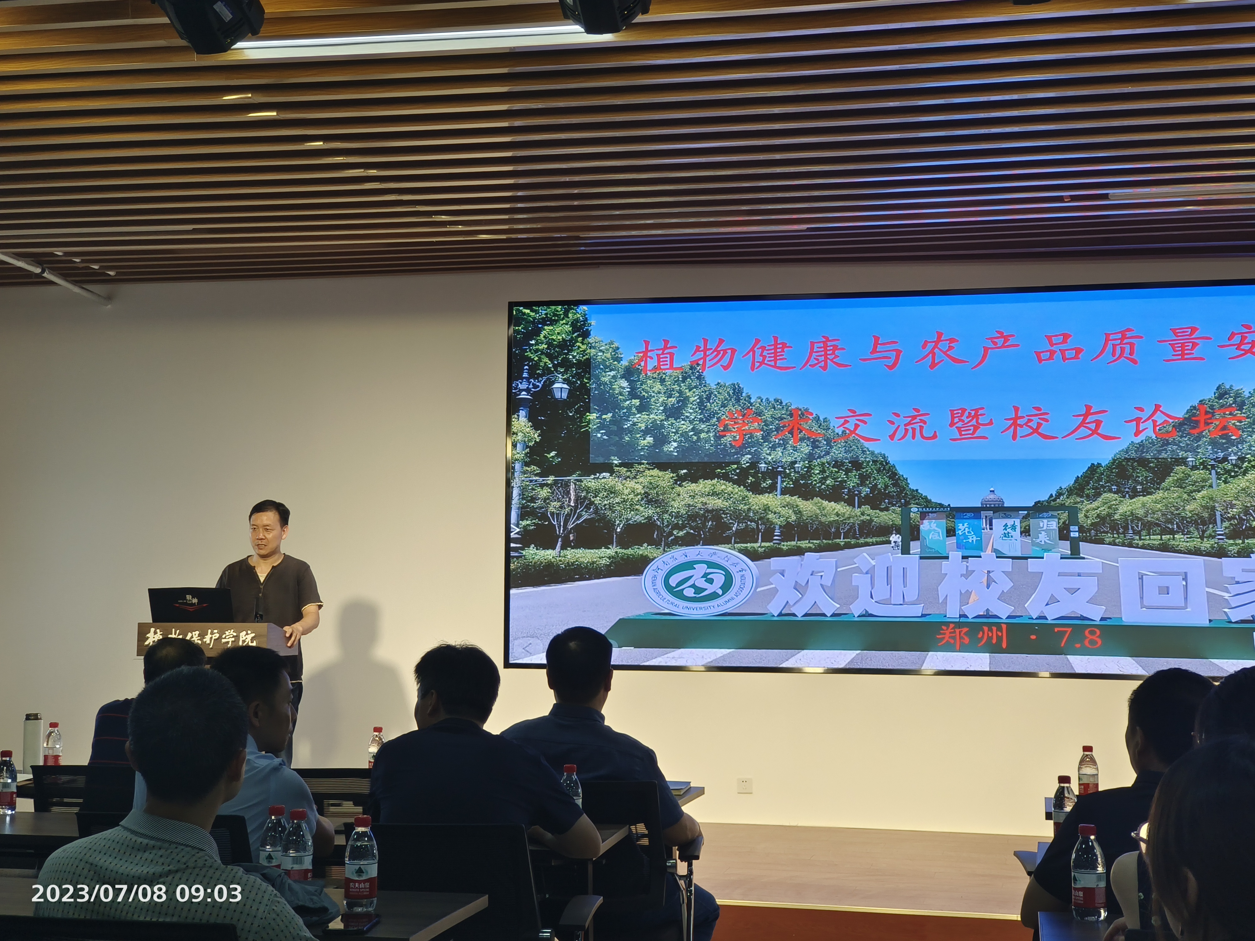 活动分为“植物健康与农产品质量安全学术交流”和“校友论坛”圆桌会议两个环节。“植物健康与农产品质量安全学术交流”活动在6楼学院活动室进行,李兴道代表学院向冒着酷暑、不远千里来参加这次活动的各位校友同学表示诚挚问候和衷心感谢,并畅谈植保发展历程、展望建院百年庆典。