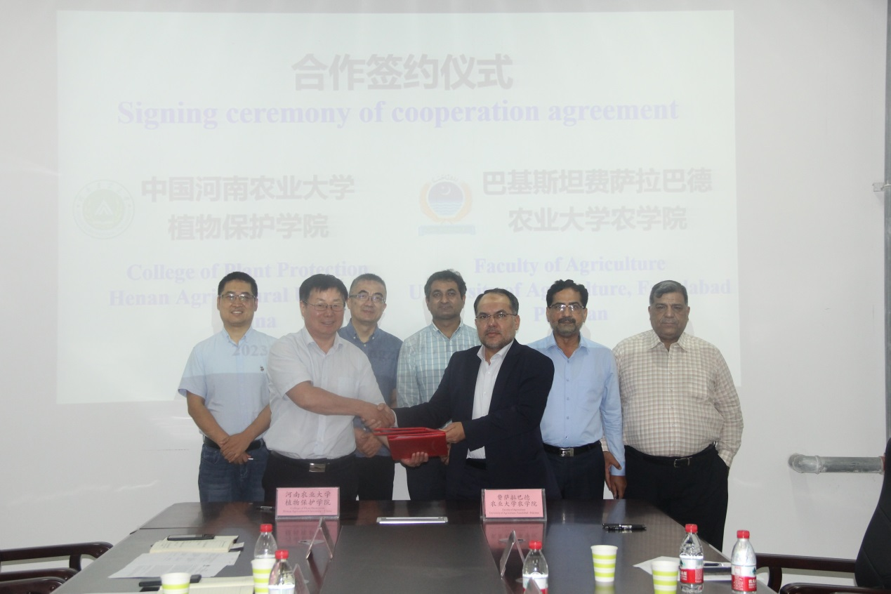 费萨拉巴德农业大学农学院和a动漫 两学院签署了合作协议,在“一带一路”合作协议框架下,双方可共同制定合作计划,教学、培训、研究和其他商定的活动开展合作,进一步加强双方之间的合作关系。双方同意根据各自的科研和教学需求,在人才建设、教师和员工培养合作;通过公认的交流方案,开展学生交换、教学科研人员交流互访;开展学术信息和资料交流;在各自官方支持下,开展重大农作物有害生物绿色防控等研究项目合作;组织共同关心的专题讨论会、研讨会、讲习班、讲座、国家/国际会议、出版和研究活动。