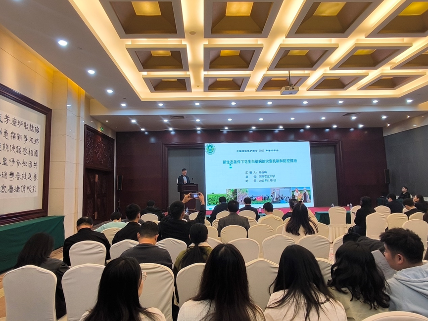 何磊鸣博士在会上做作了题为“新生态条件下花生白绢病的灾变机制与防控措施”的报告,受到了与会者的极大关注。