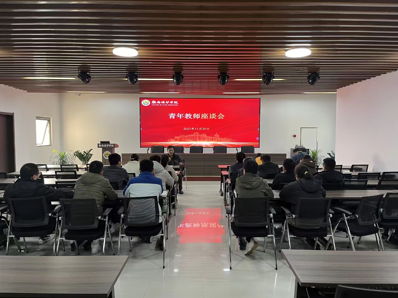 于龙子湖校区第二实验楼六楼会议室举行青年教师座谈会。院党委书记李兴道、党委副书记鲁兴、团委书记黄姗姗以及新入职青年教师代表参加座谈会。