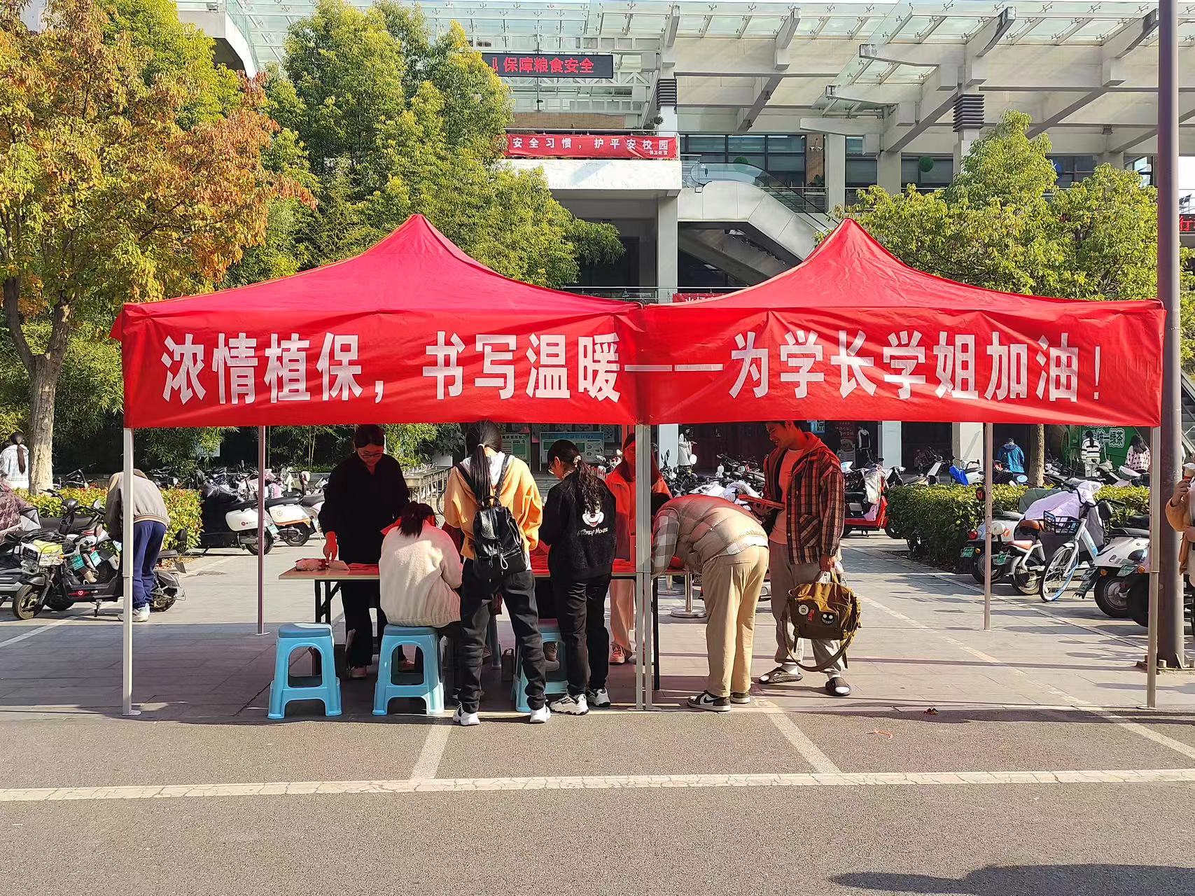 青年志愿者协会于龙子湖校区一餐厅门前举办“浓情植保,书写温暖”励志寄语活动。院党委书记李兴道、党委副书记鲁兴及学生代表参加活动。