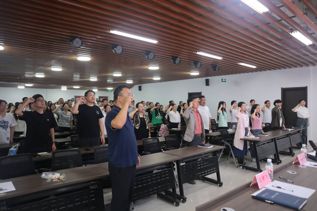 制药工程专业学生20级制药二班任恩茜带领全体党员重温入党誓词。铮铮誓言铿锵有力,庄严承诺掷地有声,坚定了党员同志们的理想信念和为共产主义奋斗终身的决心。
