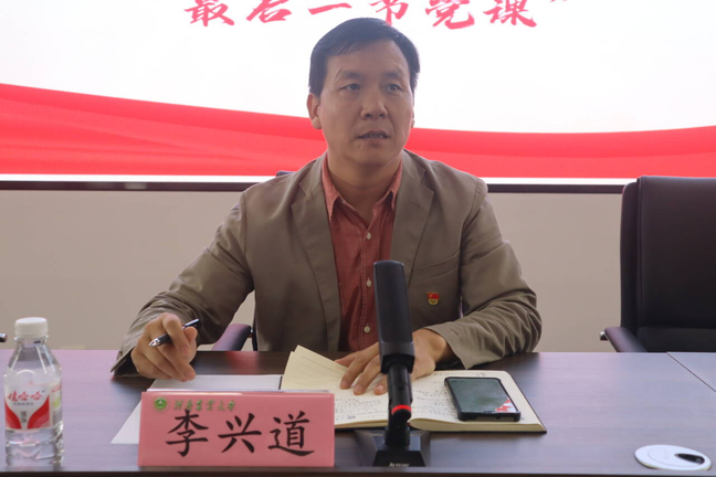 李兴道以《牢记初心使命,奋力书写为中国式现代化挺膺担当的青春篇章》为题,为毕业生党员上“最后一堂党课”。他表达了对全体党员的关怀和殷切希望,强调毕业生党员要永葆初心本色,坚守底线意识,自觉遵守党的纪律,深入学习和领悟习近平新时代中国特色社会主义思想内涵,坚定理想信念,为党奉献自己的青春鼓励全体毕业生党员要自立自强,守正创新,踔厉奋发、勇毅前行,将自身所学本领奉献社会,永葆学习热情和创新意识,追求卓越,做可堪大用、能担重任的栋梁之材,铭记并践行青年党员使命担当!