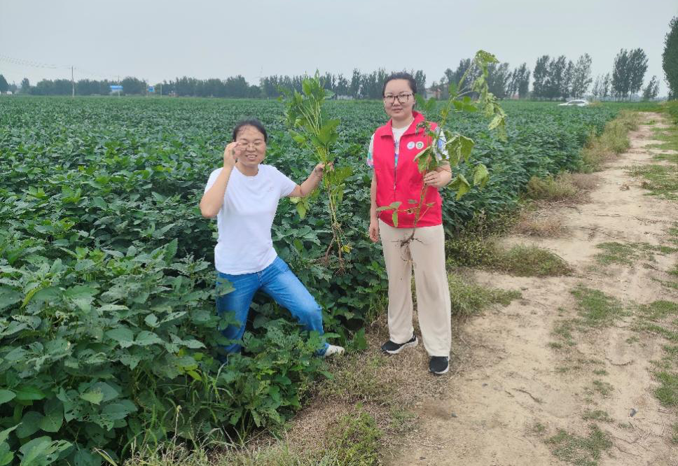 省科技特派员林榕梅、河南科技学院教师张晋玉等人前往获嘉县利生农业服务专业合作社开展大豆病虫害防治技术指导工作。
