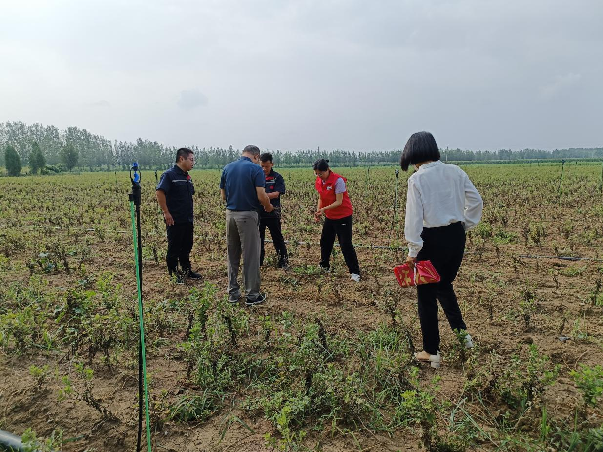 科技特派员一行与河南云台山中药科技有限公司技术负责人分别到怀菊花、怀地黄和怀山药种植基地实地考察。在怀菊花种植基地,专家组认真分析了怀菊花因为根腐病而出现大量植株枯死的原因,并提出了具体可行的综合防控措施;在怀地黄种植基地,专家组通过考察后就怀地黄的后期水肥管理、病虫草害防控和如何克服连作障碍提出了建议和解决方案。