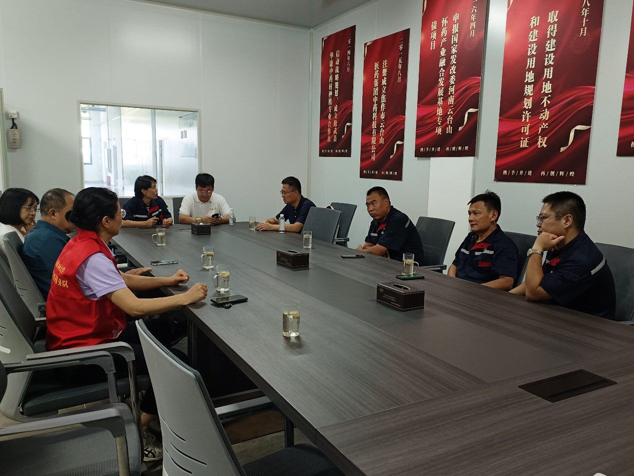 实地考察结束后,专家团队参观了河南云台山中药科技有限公司的怀药药材加工生产车间,同公司领导、种植负责人等进行了深入交流。双方就公司怀药种植过程中的栽培管理、土壤改良、病虫草害有效防控、药食同源产品加工等问题分别进行了探讨,并就如何落实科技特派员的工作内容和任务达成协议,力争让科技特派员及其专家团队的科技服务和指导成效在企业科技创新和产业升级中开花结果。