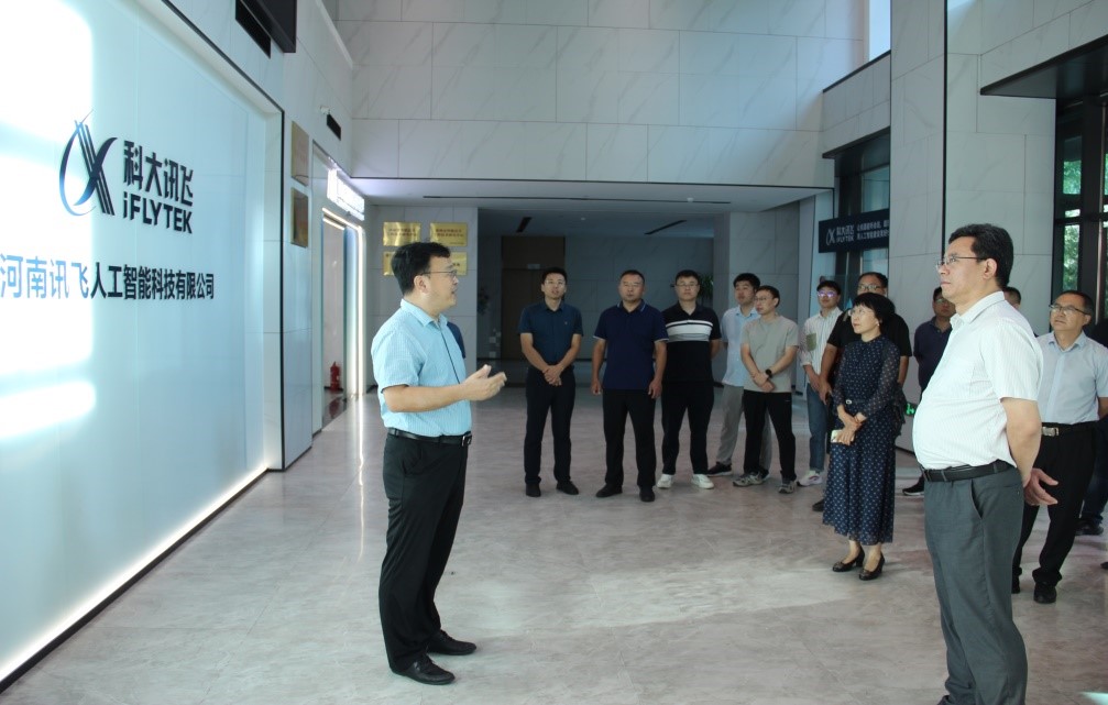 到科大讯飞中原总部参观交流。学院党委书记李国权、院长周琳、副书记鲁兴、副院长曲岩及教师代表,科大讯飞河南研究院院长闫润强、副总经理尹晓辉、副院长马金龙、经理张永祥等参加此次活动。