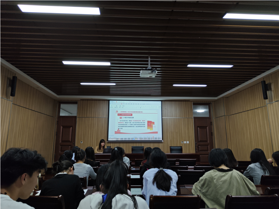 第八届青马班于第二实验楼2中217报告厅开展学习党的二十届三中全会精神活动,会议由青马班班主任茹茜主持。
