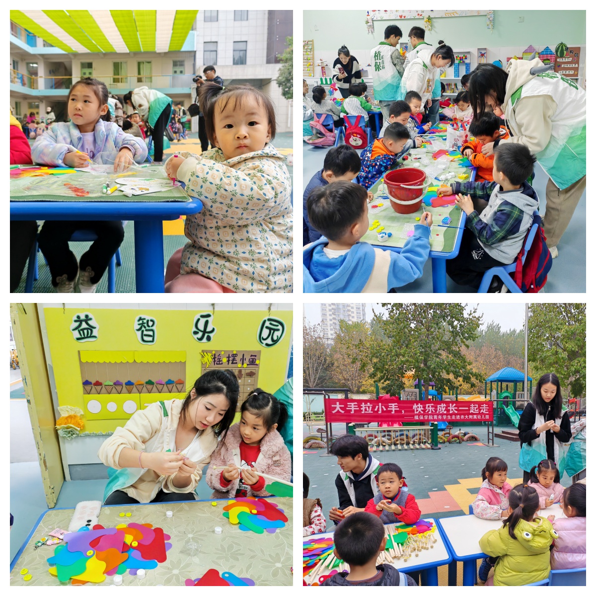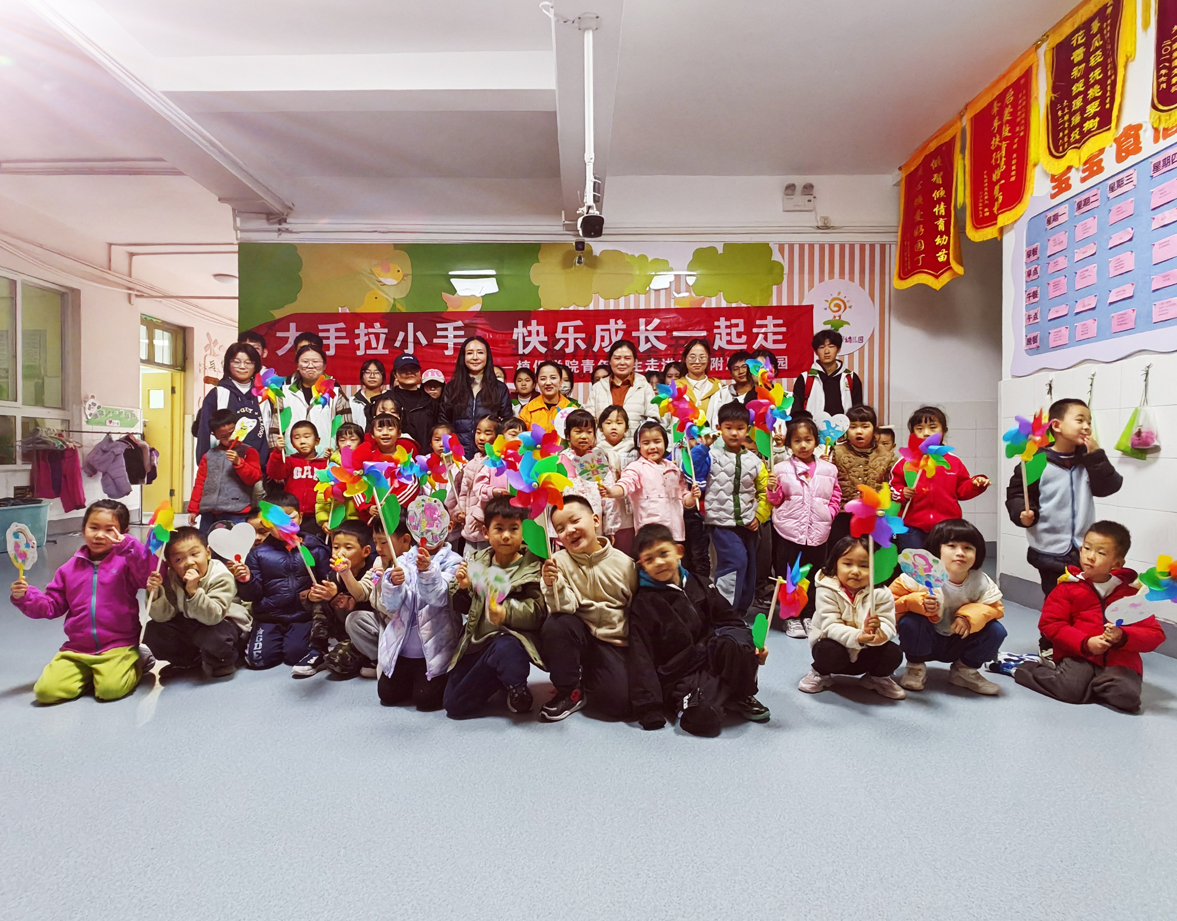 幼儿园开展了“大手拉小手,快乐成长一起走”志愿服务活动。20余名师生与百余名小朋友参加活动。