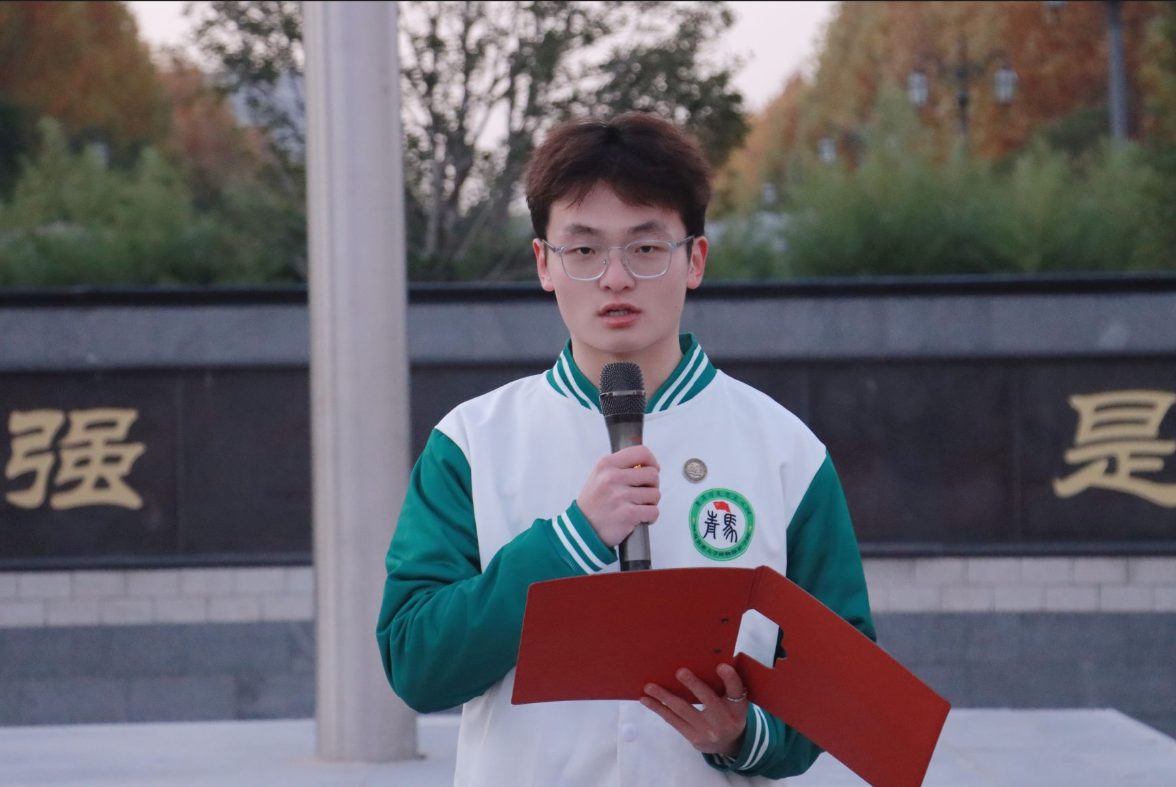 学生代表学院青马班班长柴川智进行国旗下的演讲,他分享了自己在学业上的拼搏历程与内心感悟,表达了对未来充满无限期望和对祖国的赤子之心。他呼吁同学们刻苦学习,凝心聚力,在追求卓越的道路上砥砺前行,以满腔的热情、昂扬的斗志和必胜的信念,迎接学校党代会的盛大召开。