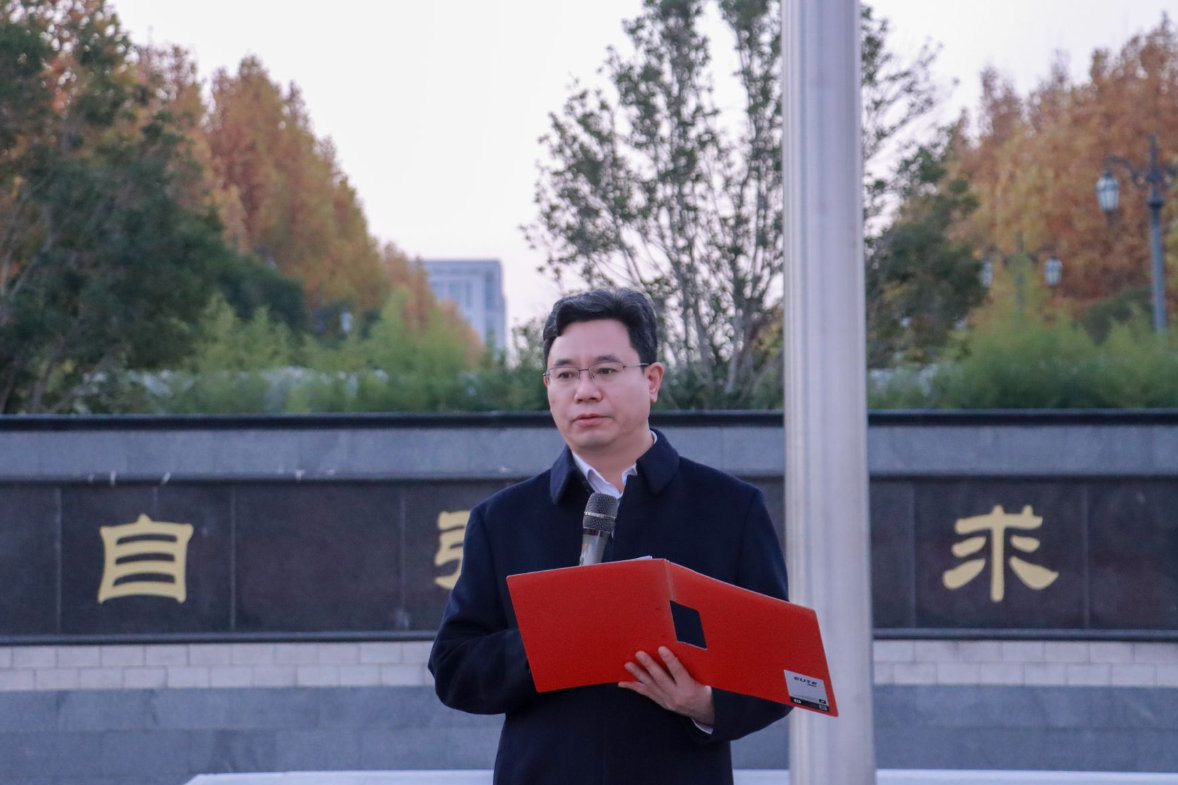 于龙子湖校区中心广场举行“喜迎党代会,聚力谱新篇”主题升旗仪式。学院教职工代表及全体在校生参加升旗仪式,升旗仪式由院团委书记黄姗姗主持。