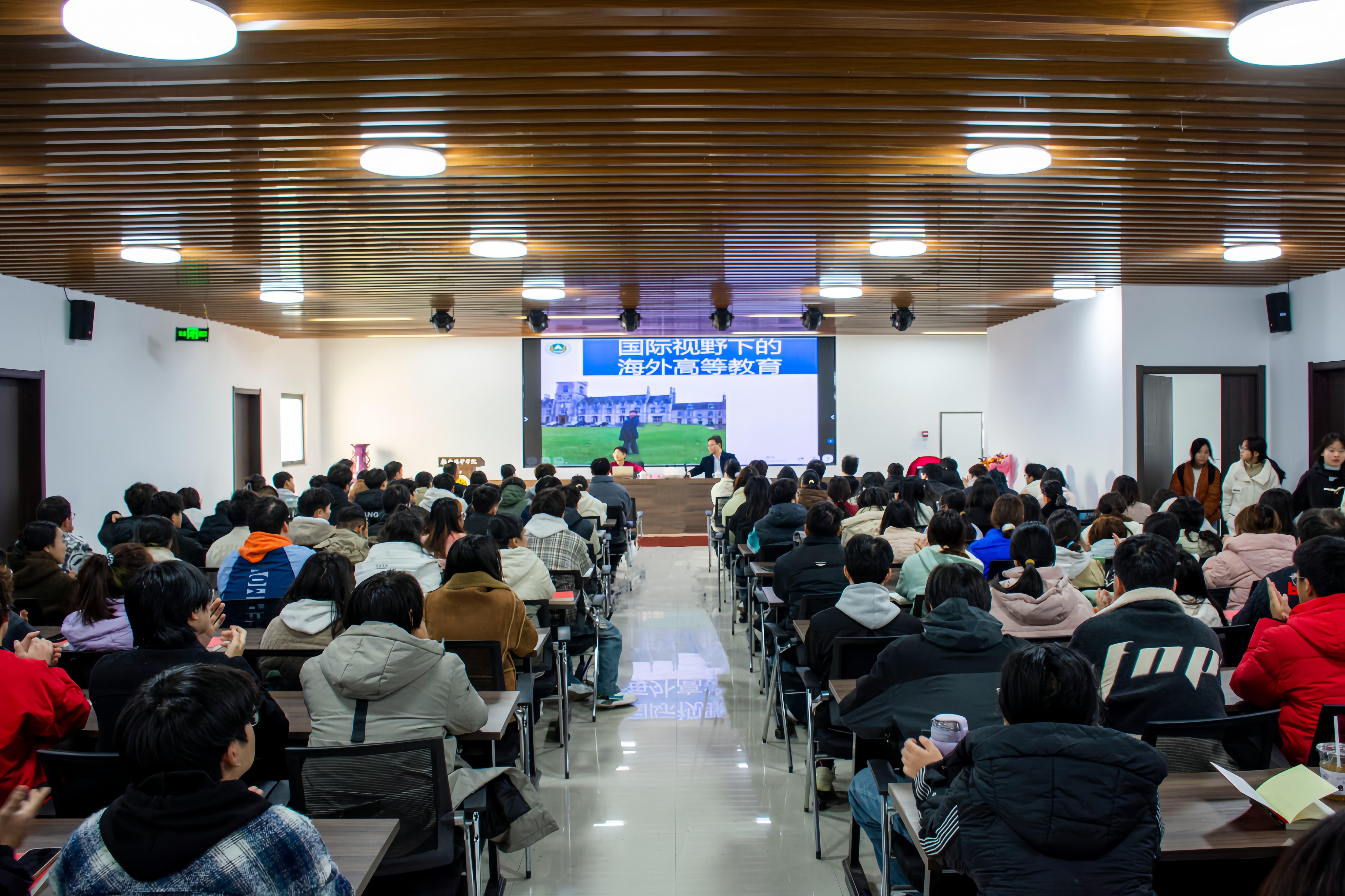 邀请国际教育学院院长梁兵教授于力行楼六楼报告厅作“国际视野下的海外高等教育”主题报告,学院党委书记李国权、副书记鲁兴、辅导员老师和学生一起聆听了报告。