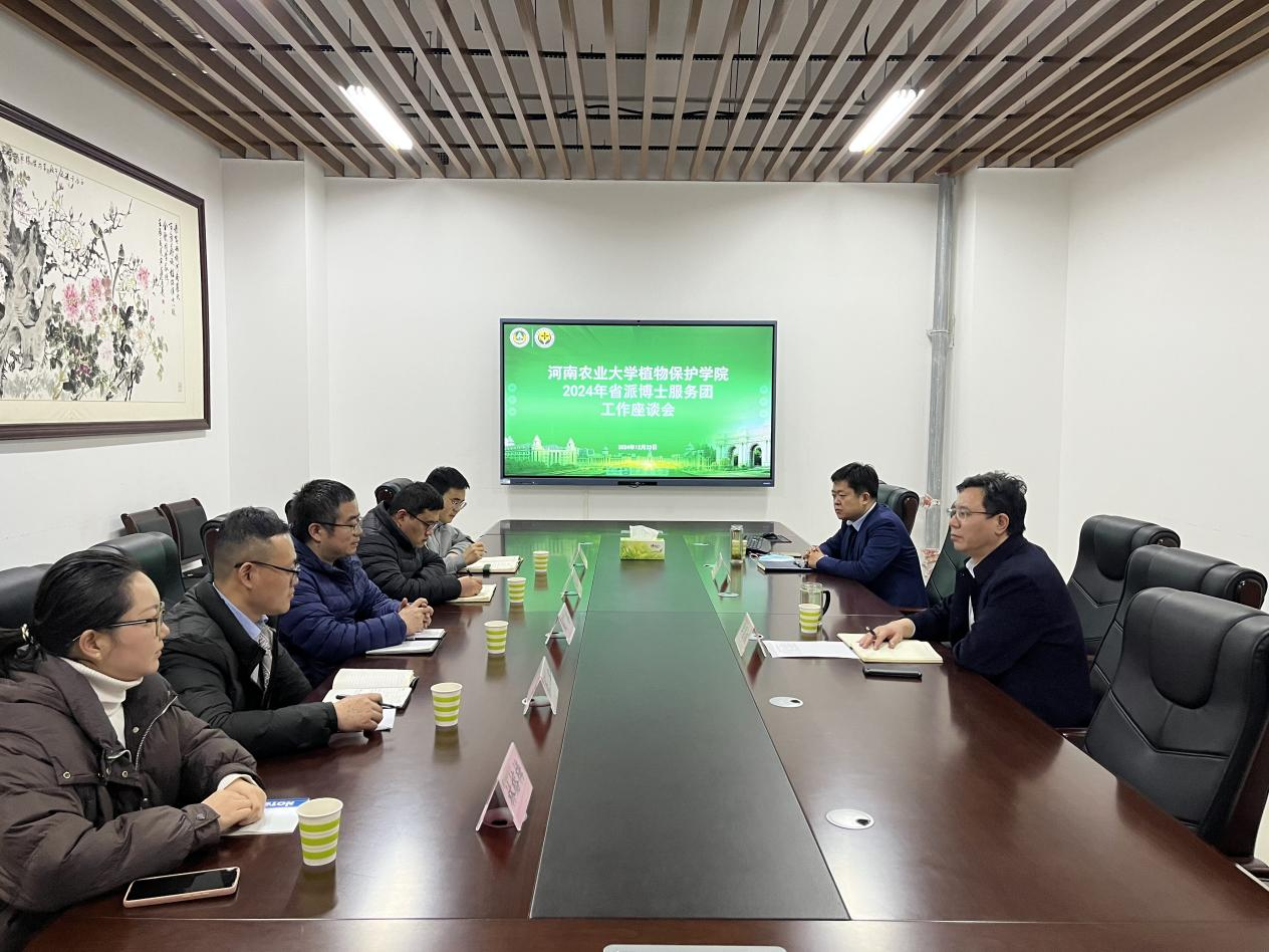 李国权对博士服务团成员的工作给予了高度评价与充分肯定。他赞扬了成员们在各自岗位上所展现出的专业素养和奉献精神,并表示学院将一如既往地支持博士服务团的工作。李国权就下一步继续做好博士服务团工作提出5点要求:一是要自我加压,不断提升自身综合素质和业务能力;二是要充分发挥博士服务团的作用,做好工作衔接,确保教学科研与服务工作两不误;三是要相互学习、取长补短,虚心向企业和基层学习先进经验和技术;四是要提高政治站位,弘扬创新精神,积极发挥桥梁和纽带作用,为推动学院与服务单位的合作与发展贡献力量;五是要坚守底线和红线意识,团队成员们时刻注意自身言行举止,展现植保人的良好形象。