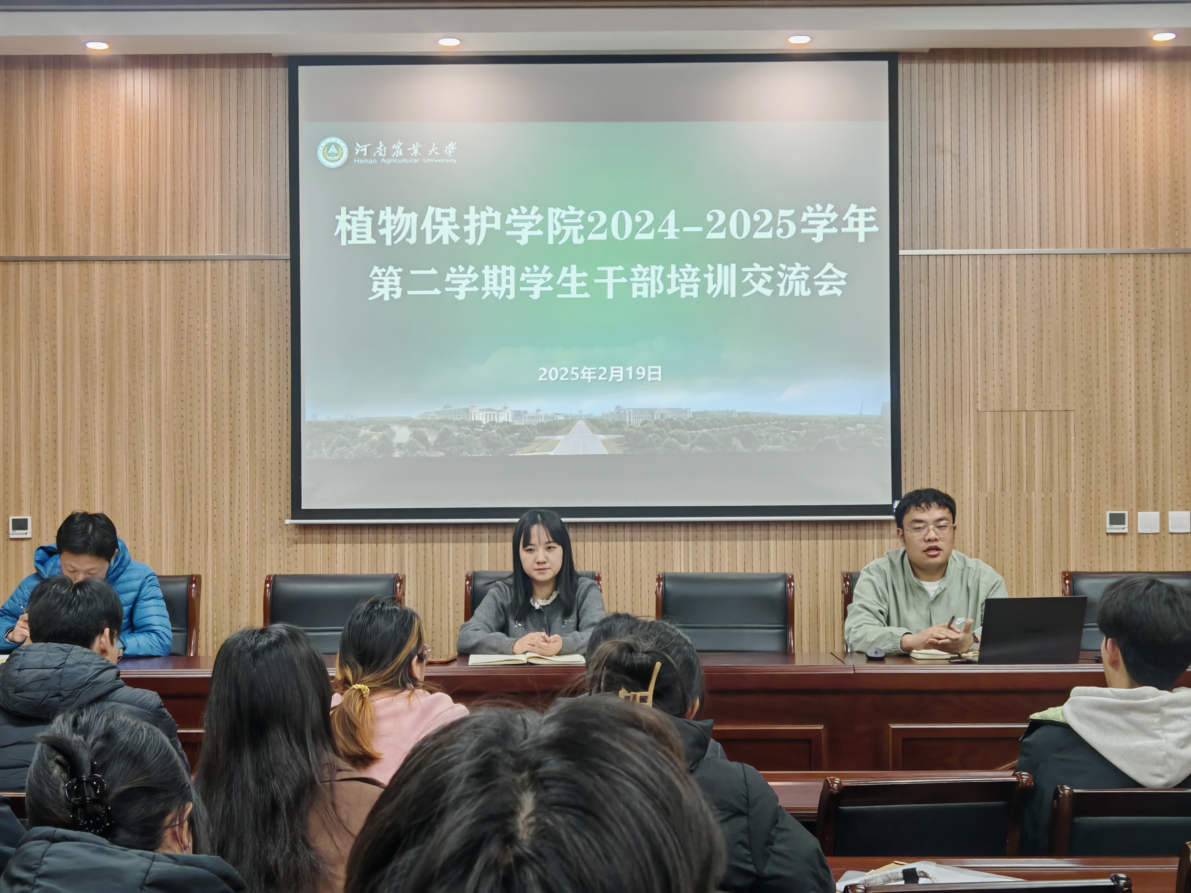 于第二实验楼217会议室召开新学期学生干部培训交流会。院团委书记黄姗姗,辅导员王赟飞、郭俊阳及全体2022级学生干部参加会议,会议由王赟飞主持。