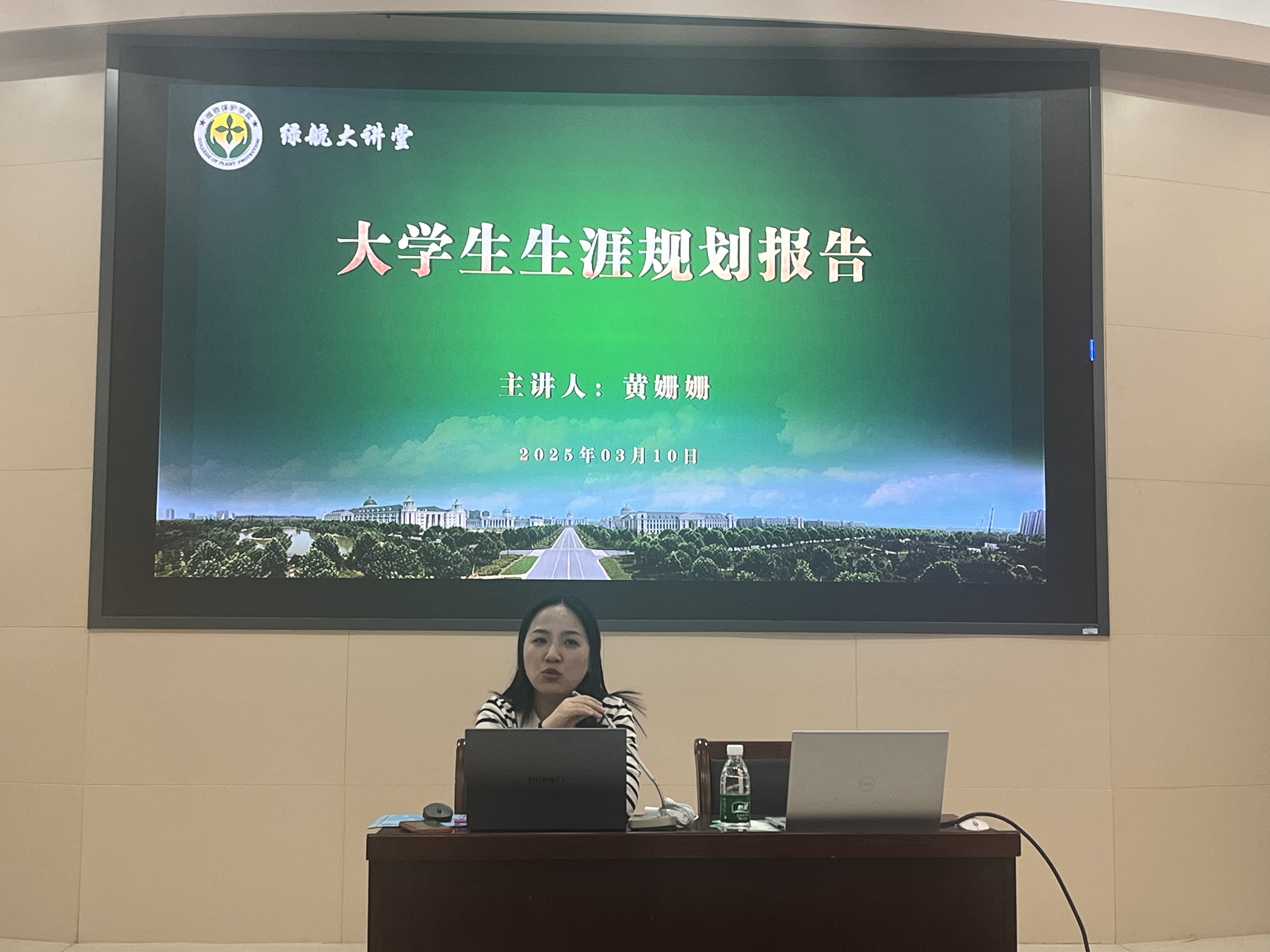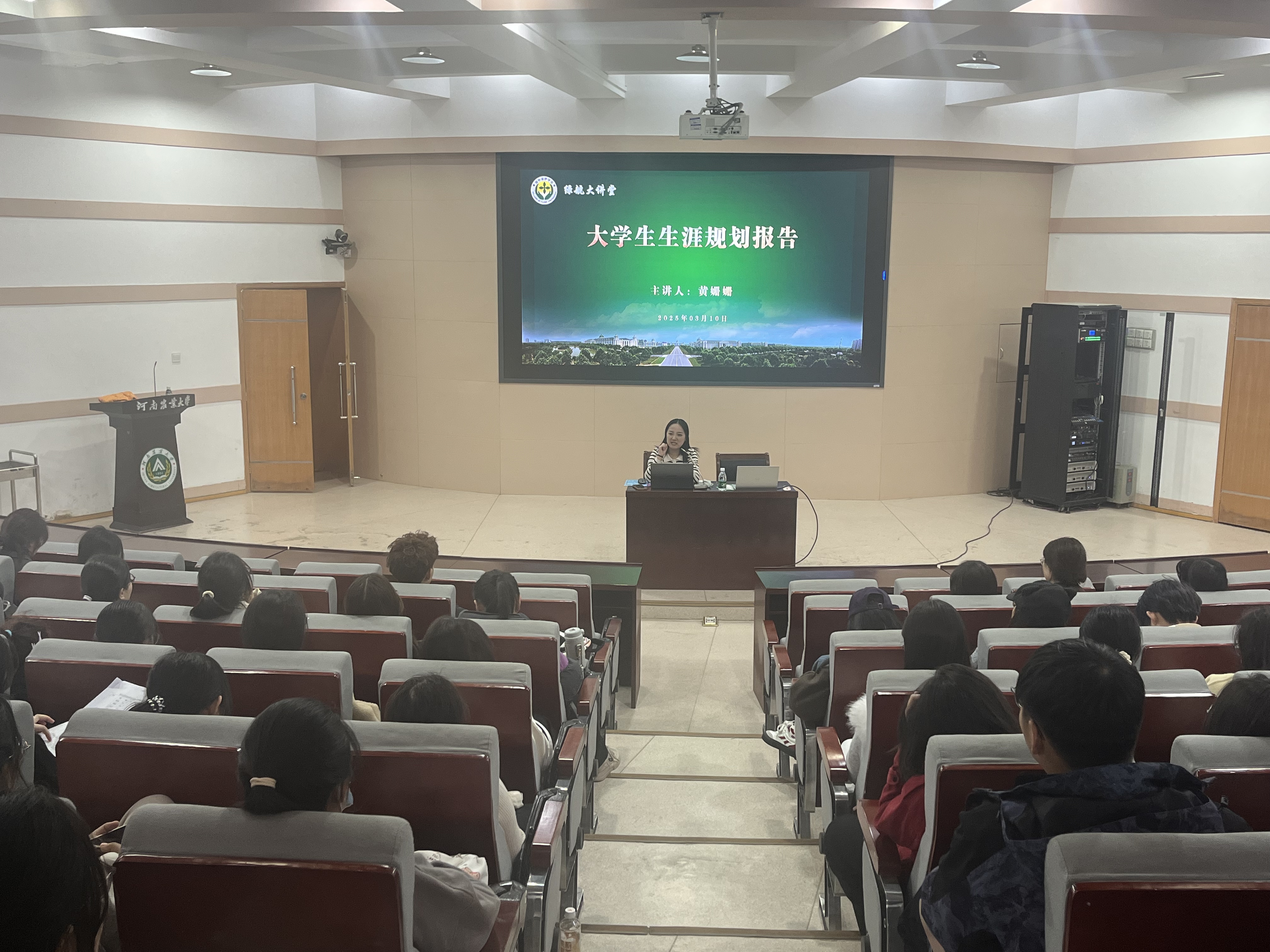 特邀院团委书记黄姗姗于文化路校区300人报告厅举办“绿航大讲堂-大学生生涯规划”主题报告,讲座由辅导员郭俊阳老师主持,24级全体学生参加讲座。
