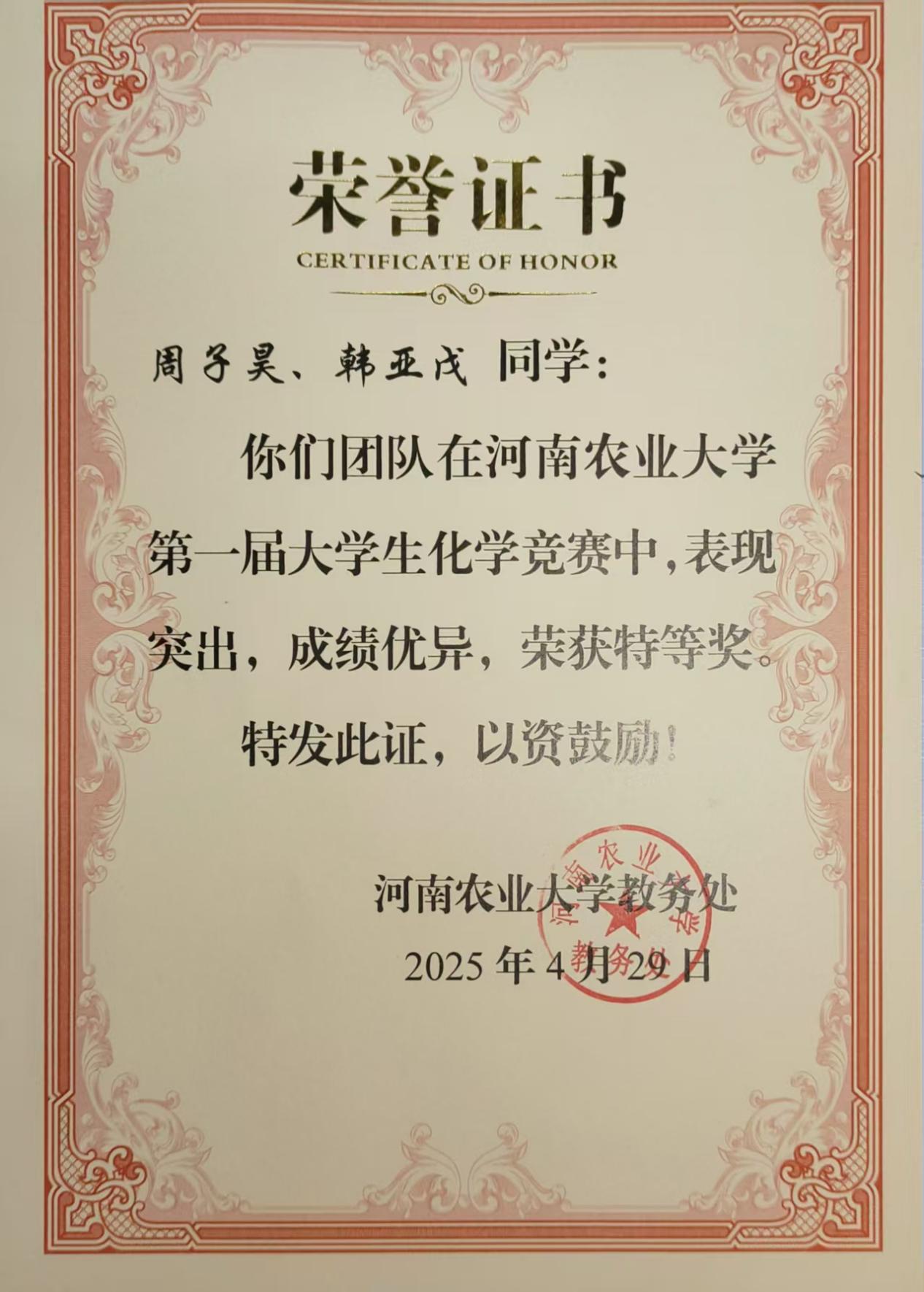 荣誉证书
