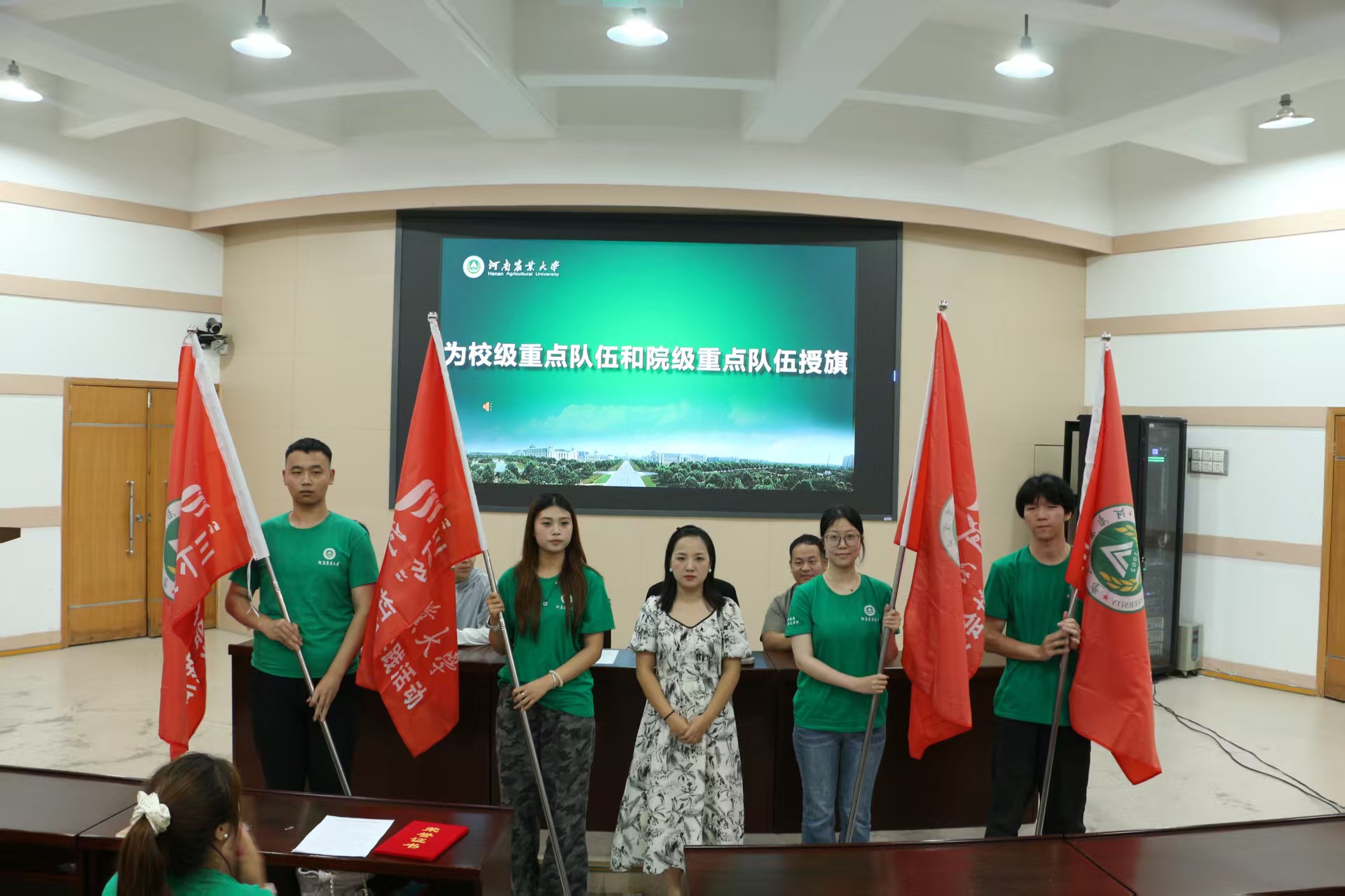 院团委书记黄姗姗为校级、院级重点队伍授旗,植保学子将继续在这个盛夏投身基层、服务社会,为基层发展注入活力,将青年力量与国家战略同频共振。