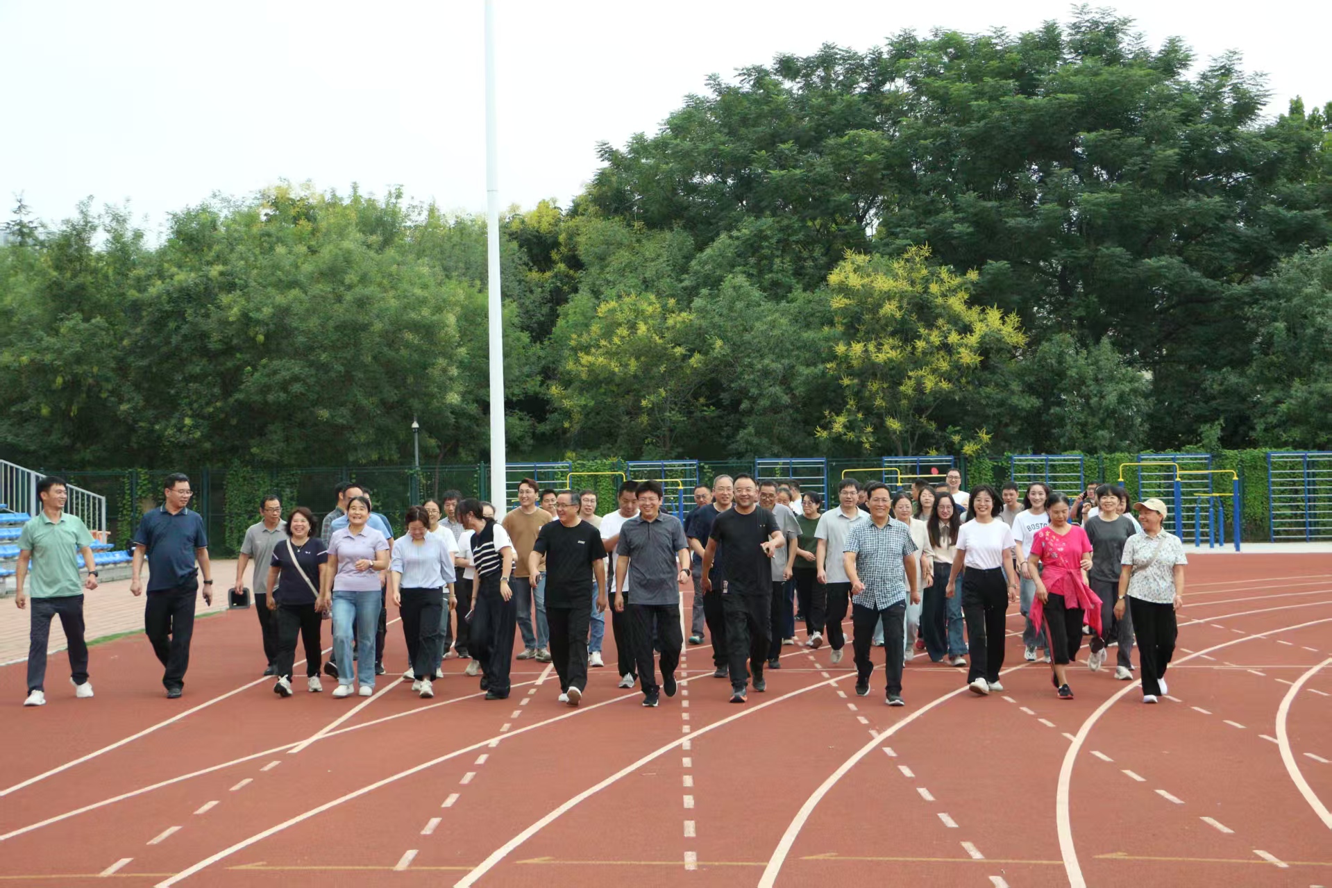 健步走活动中,伴随着“健步展风采,同心创一流”的口号声,全体教职工们精神饱满地迈出步伐。他们迎着微风,身姿矫健,每一步都充满了力量,彰显着对教育事业的热忱。活动中,大家情绪高涨,阔步向前,充分展现出学院教师积极向上的精神风貌。