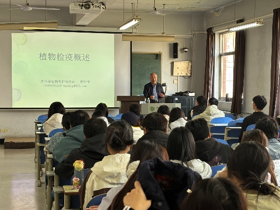 特邀植物检疫专家韩世平研究员,于2025年10月21日在桃东楼608教室为 2025级动植物检疫(植检)专业新生讲授专业导论课。 课上,韩世平研究员围绕植物检疫概述、植物检疫法规和植物检疫管理体制、国内农业植物检疫的基本制度和河南省农业植物检疫工作简介展开讲解,系统介绍了什么是植物检疫?为什么要进行植物检疫?怎么进行植物检疫?