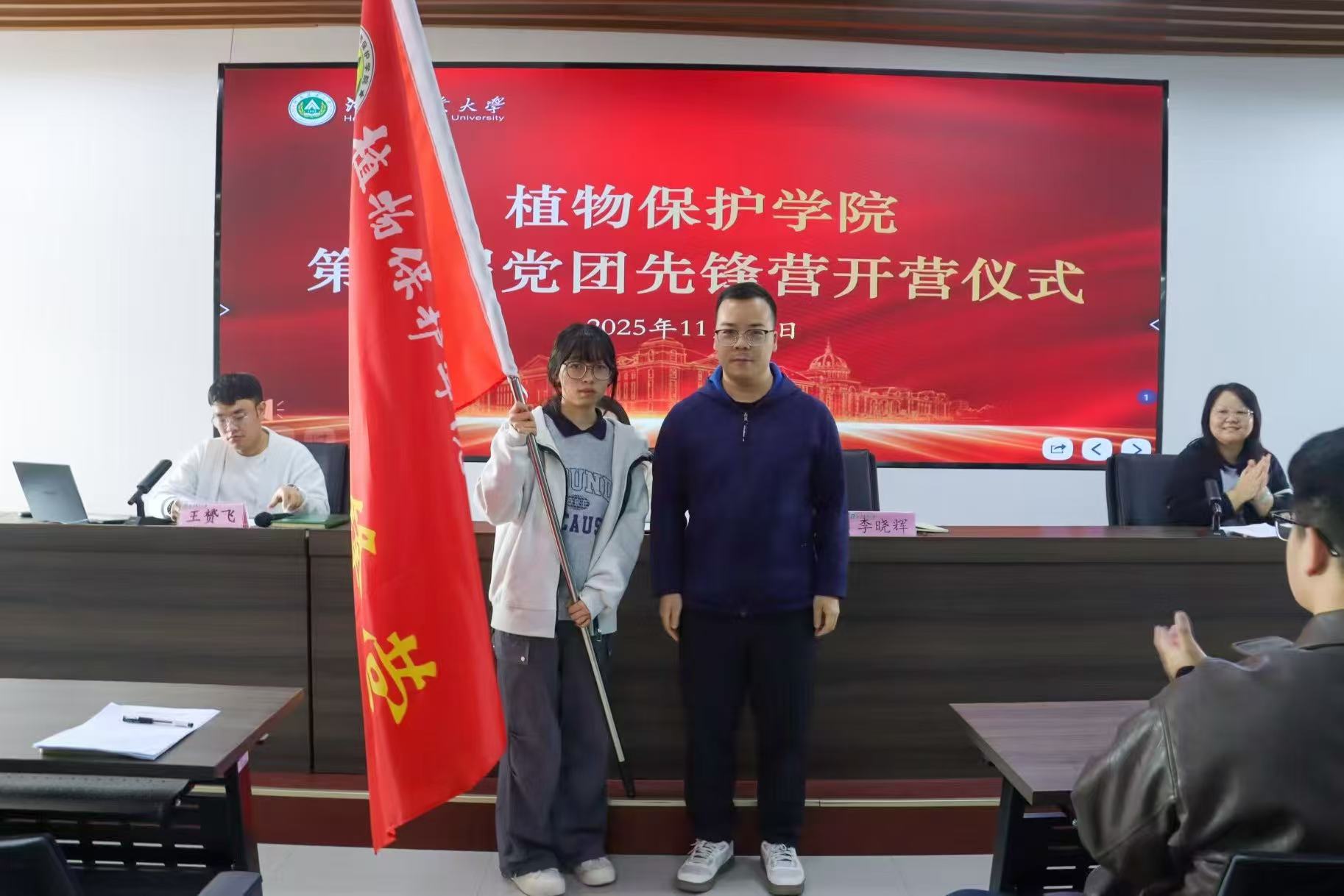 李晓辉为第一届党团先锋营授旗,党团先锋营代表韩瑞同学郑重接旗。旗帜在手,使命在肩,这面象征着党团精神与青年责任的营旗,将引领全体成员践行先锋使命。