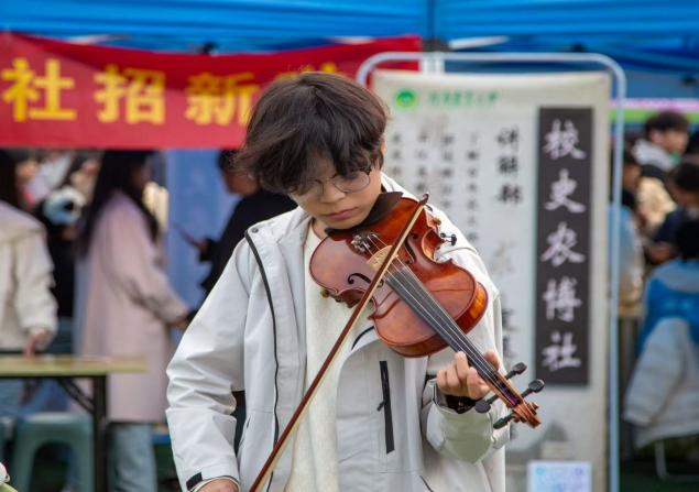 春华艺术团的舞台表演堪称现场焦点。社团成员轮番献上活力四射的舞蹈、悠扬雅致的小提琴独奏等精彩节目,灵动的舞姿和精湛的演奏尽显艺术魅力,台下掌声与喝彩声此起彼伏。扎实的专业功底与独特的艺术感染力,吸引了大批热爱艺术的新生当场咨询报名。