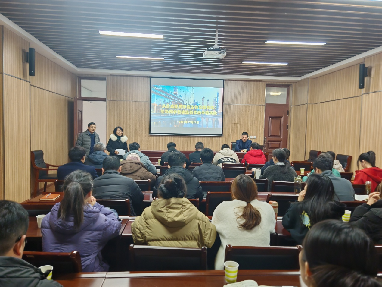 特邀康码(上海)生物科技公司副总裁,康码高产公司总经理、康码河南公司总经理李晨,为师生作题为《从合成生物学到生物智能制造:生命科学和农业科学的中国实践》的专题学术报告。报告会由周琳院长和闫凤鸣教授共同主持。