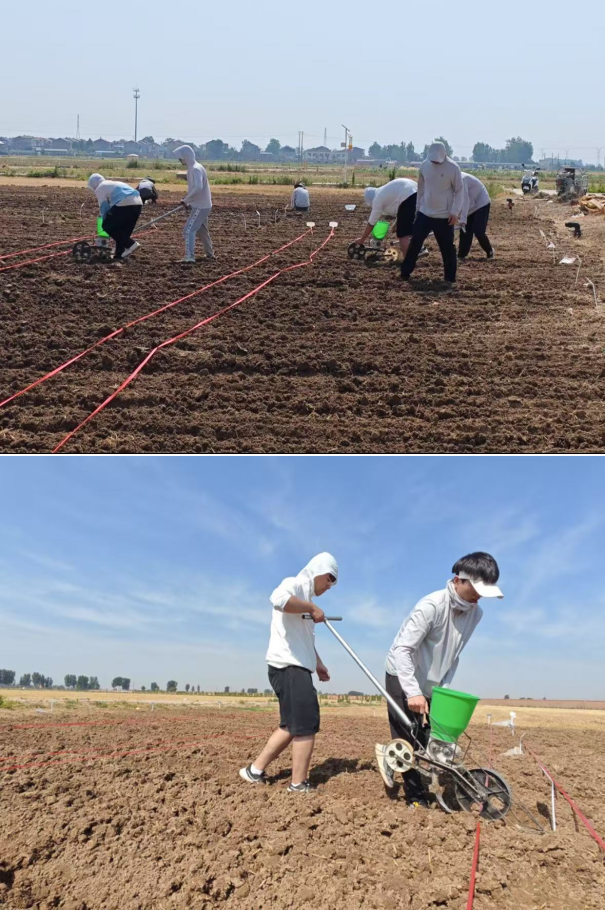 师生团队充分发挥专业优势,运用先进检测设备对示范基地土壤墒情、养分含量等关键指标进行系统分析。在农业社会化服务中心的技术支持下,团队创新采用“科技特派员+高校师生+社会化服务”的协同模式,有序开展地块规划、机械化播种、生长环境勘察等工作。本次试验重点围绕花生产业升级需求,着力开展抗病高产新品种筛选和白绢病综合防治技术研究。